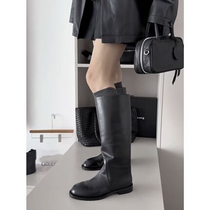 2025新款真皮复古马丁靴女不过膝长靴百搭显瘦骑士靴女高筒靴单靴