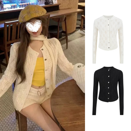 MosesQueen魔西女王白色辣妹镂空针织开衫秋季新款设计感气质上衣