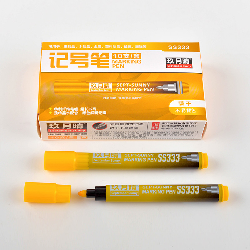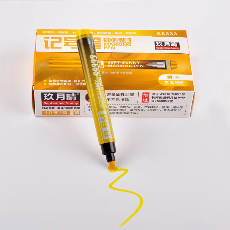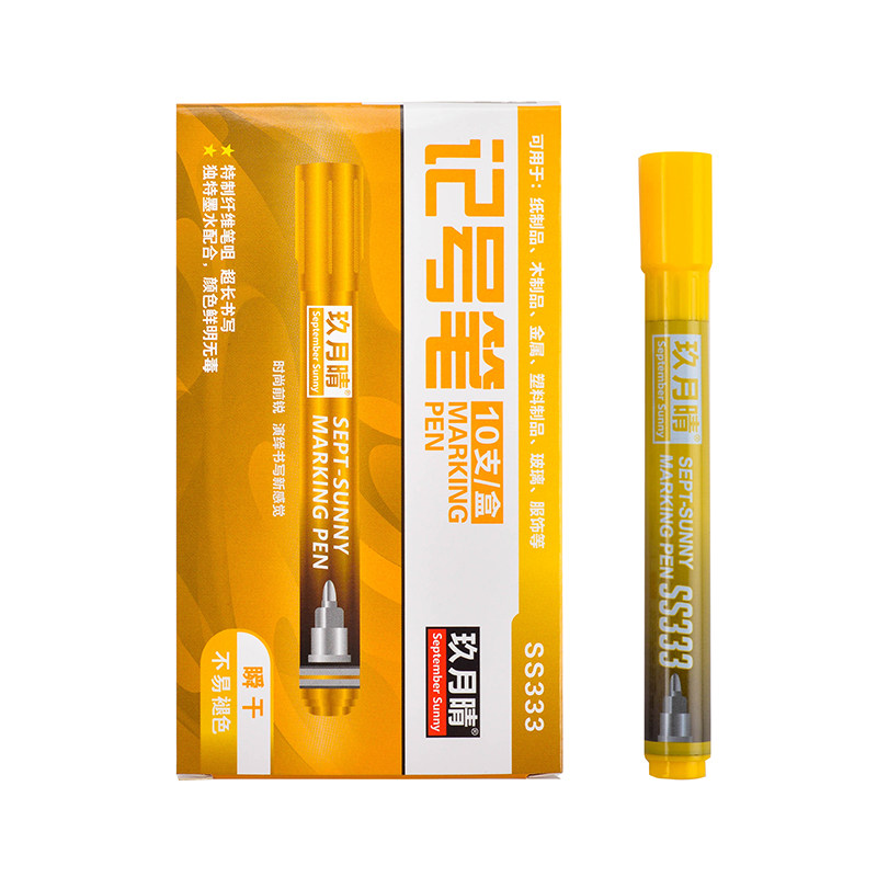 黄色记号笔防水防油不掉色彩色标记笔马克笔大号单头油性笔10支装