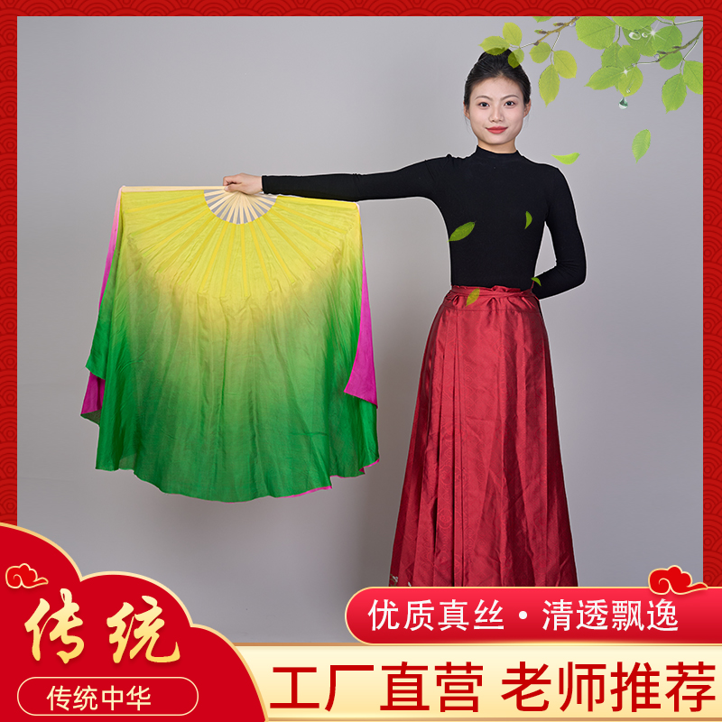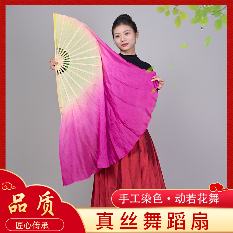 真丝舞蹈扇六月清荷扇子双面渐变色加长舞台表演古典演出跳舞扇子