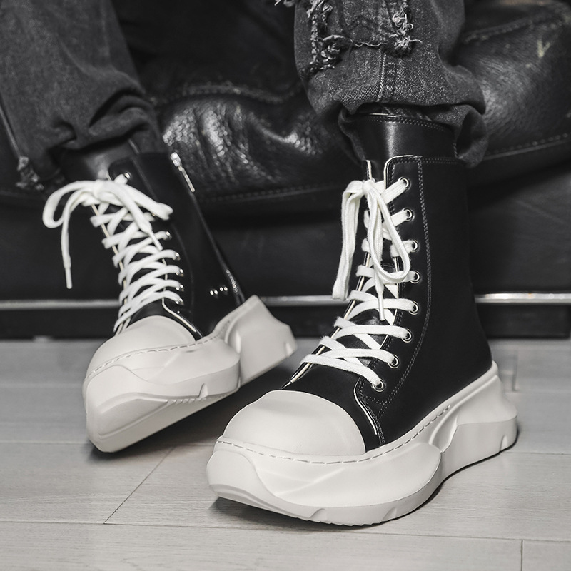 跨境2025新款厚底增高男鞋帆布高帮鞋休闲潮流板鞋男一件时尚L2