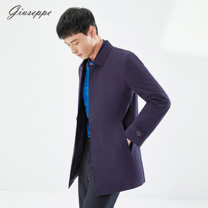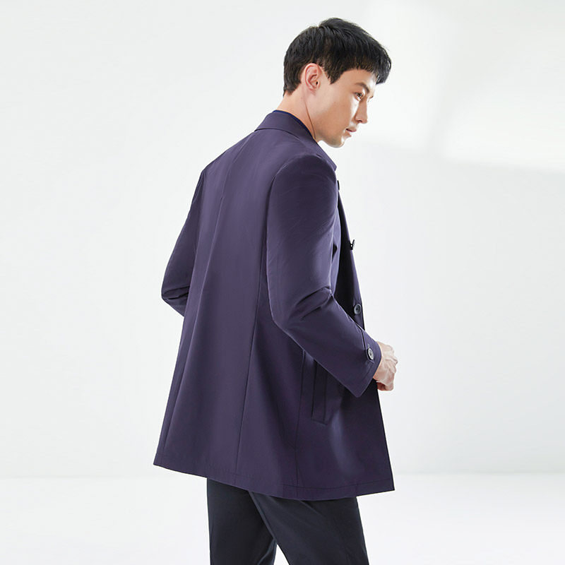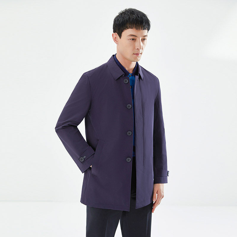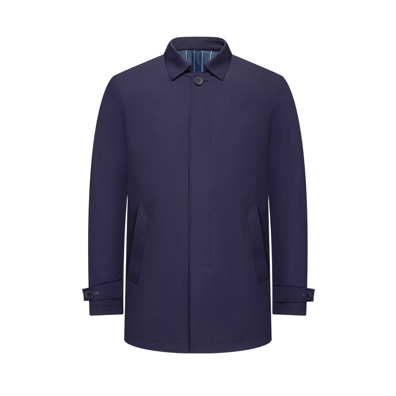 乔治白春秋男士商务休闲风衣翻领外套直筒短款藏青厅局风薄上衣