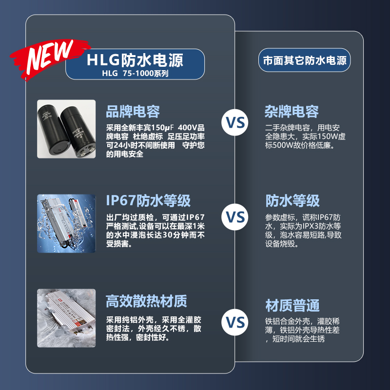 漫威HLG防水开关电源220转换12V24V36V48V室外直流灯带适配变压器