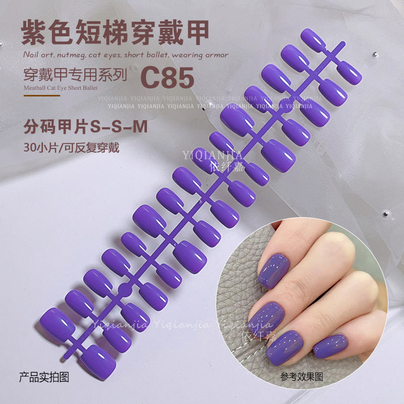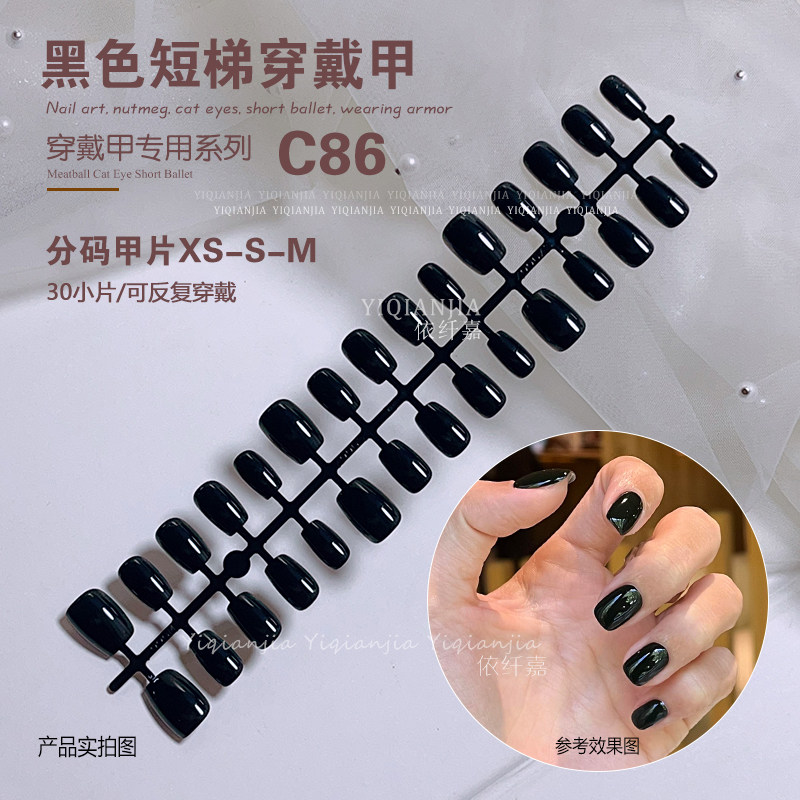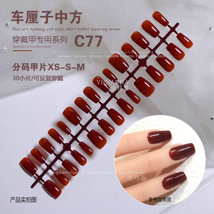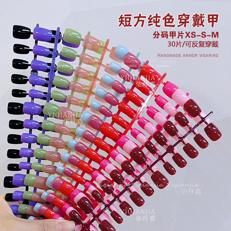 彩色纯色新年红车厘子酒红短方裸色穿戴甲红色渐变甲片分码美甲片