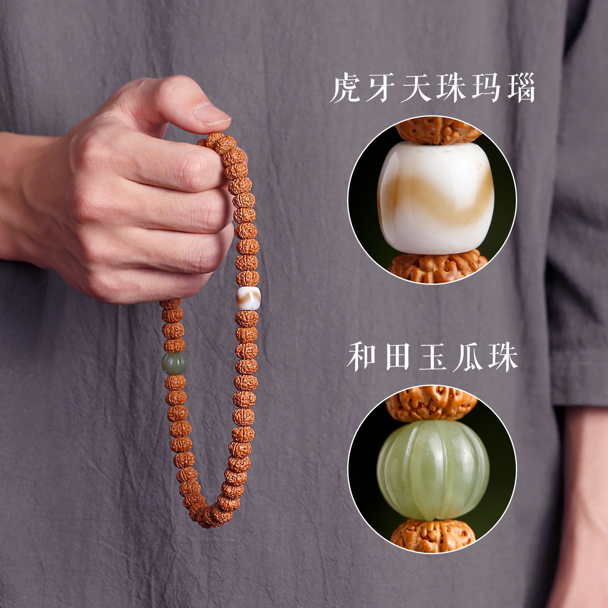 尼泊尔小金刚菩提子手串双圈男女佛念珠手链盘玩虎牙天珠文玩配饰