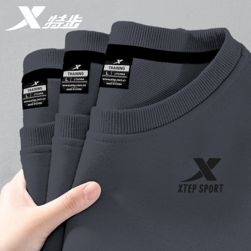 特步卫衣男品牌长袖t恤春秋季2025新款圆领打底衫宽松休闲上衣男