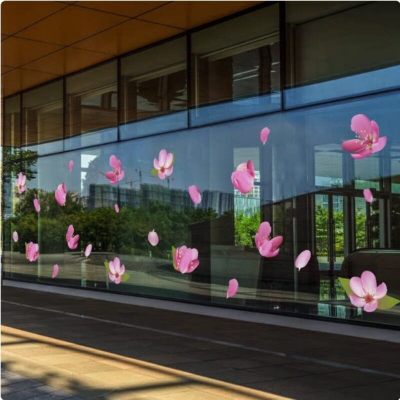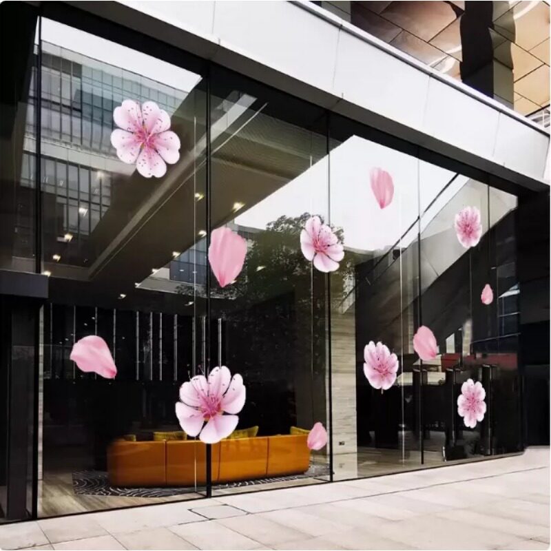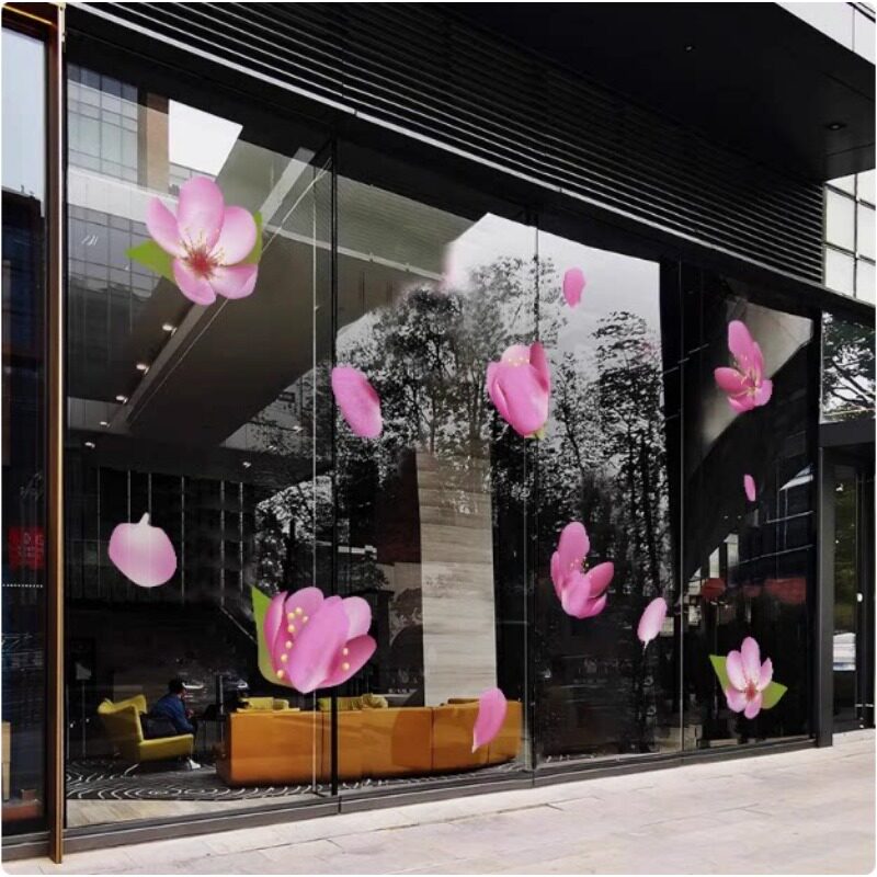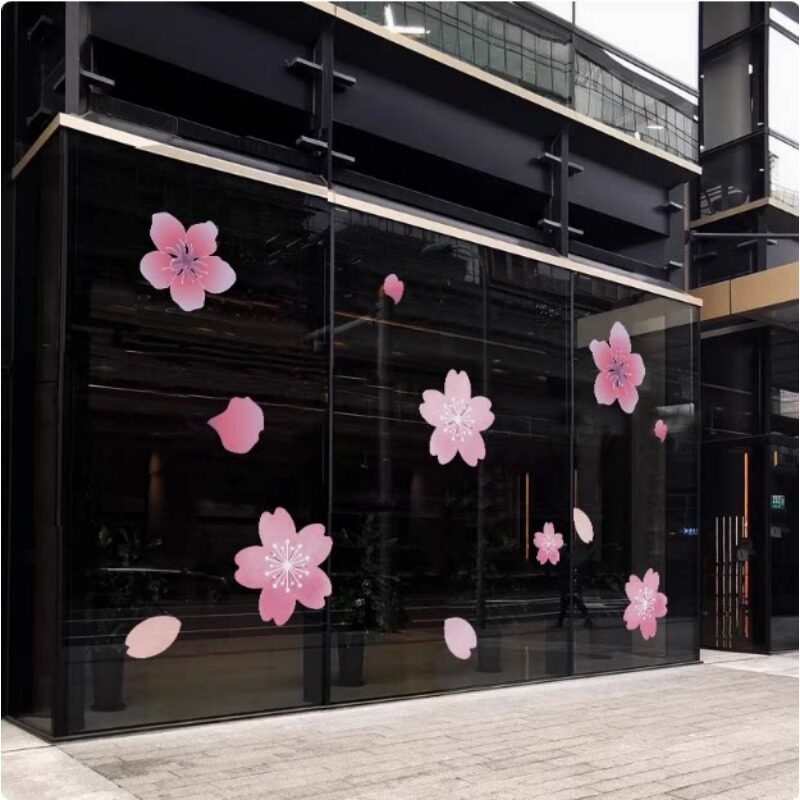 春季樱花玻璃门橱窗装饰贴纸店铺商超促销服装美容店桃花静电墙贴