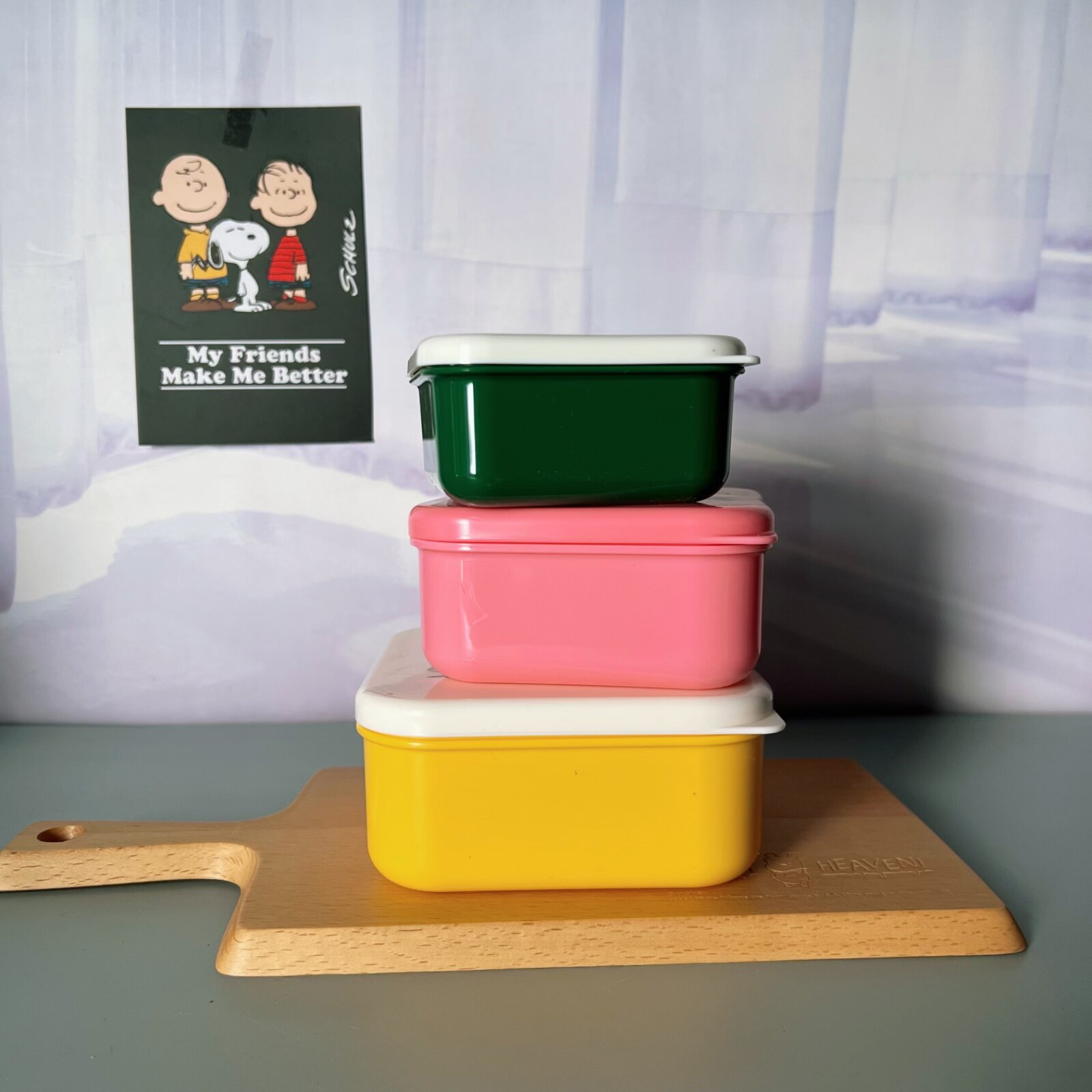 日本购回史努比snoopy可微波饭盒三件套不防漏