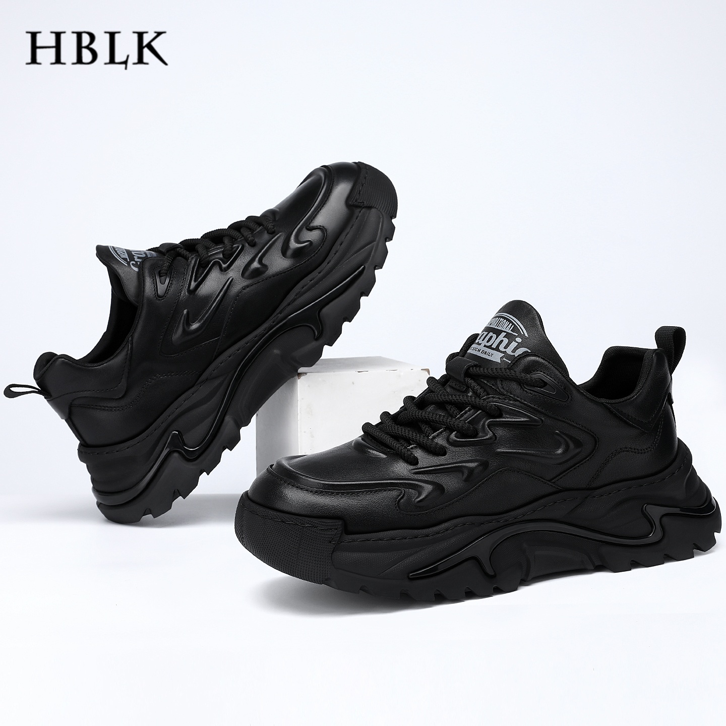 男鞋2025秋季新款真牛皮潮流运动鞋子男士厚底增高黑色休闲老爹鞋