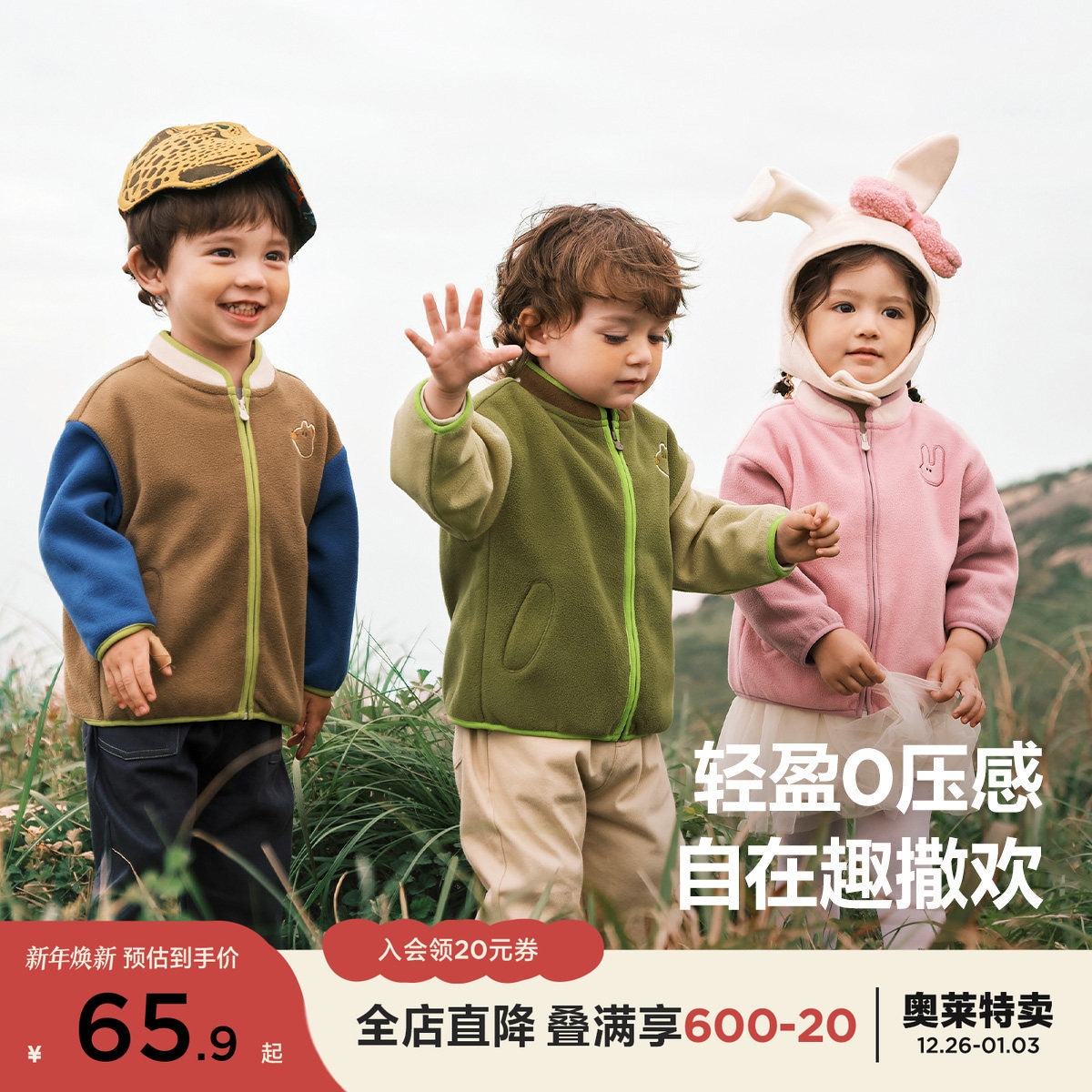 【猫绒绒】迷你巴拉巴拉男童女童外套春装宝宝双面摇粒绒儿童春秋
