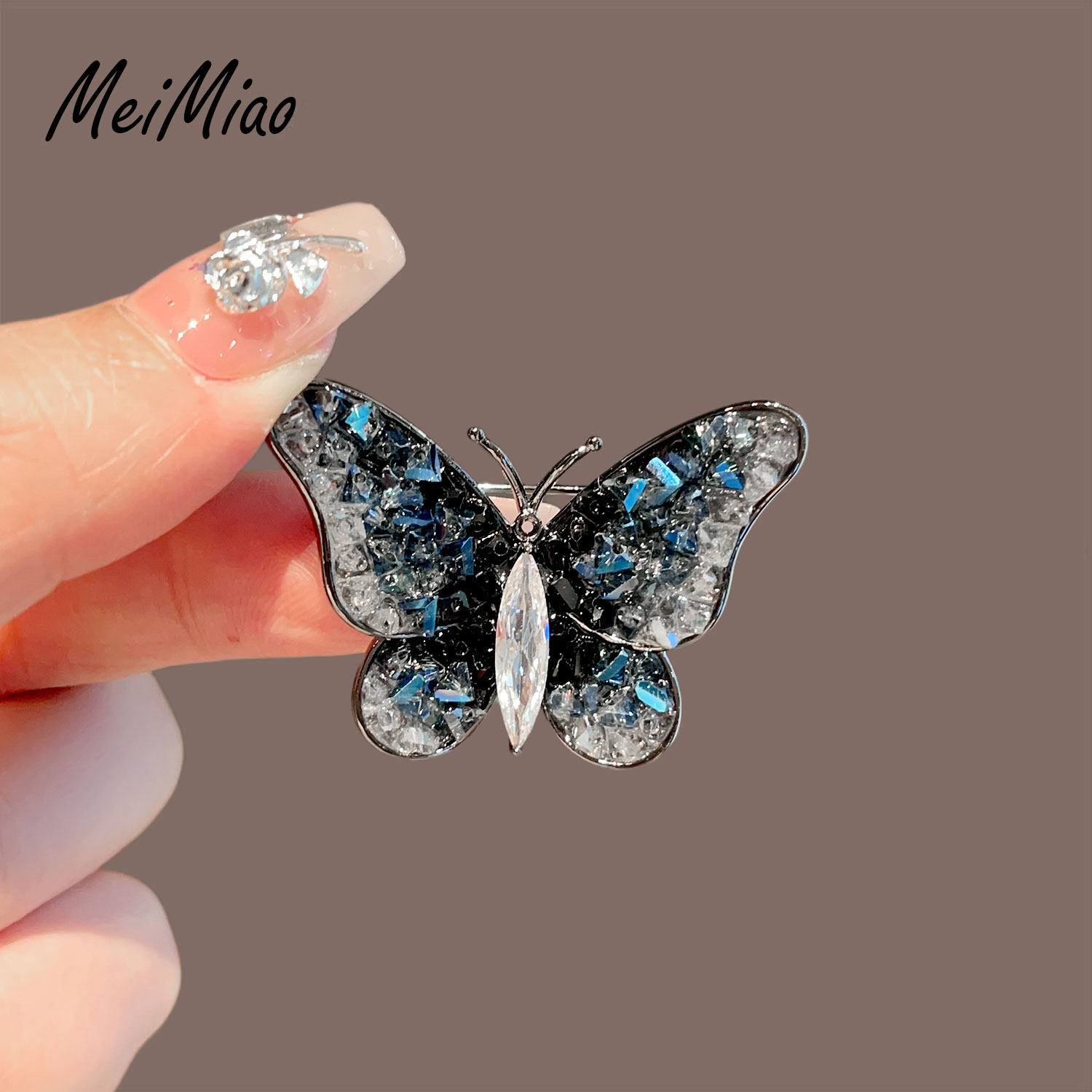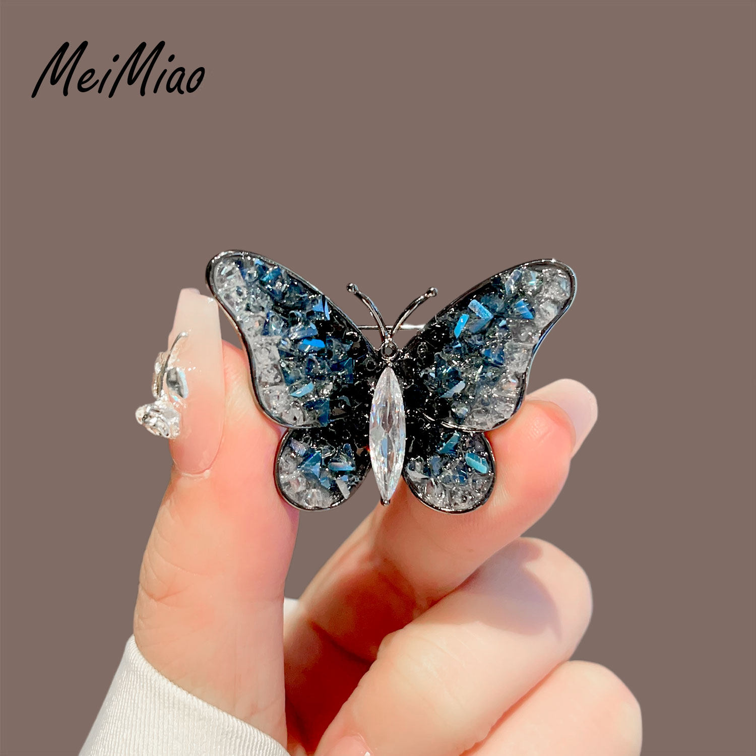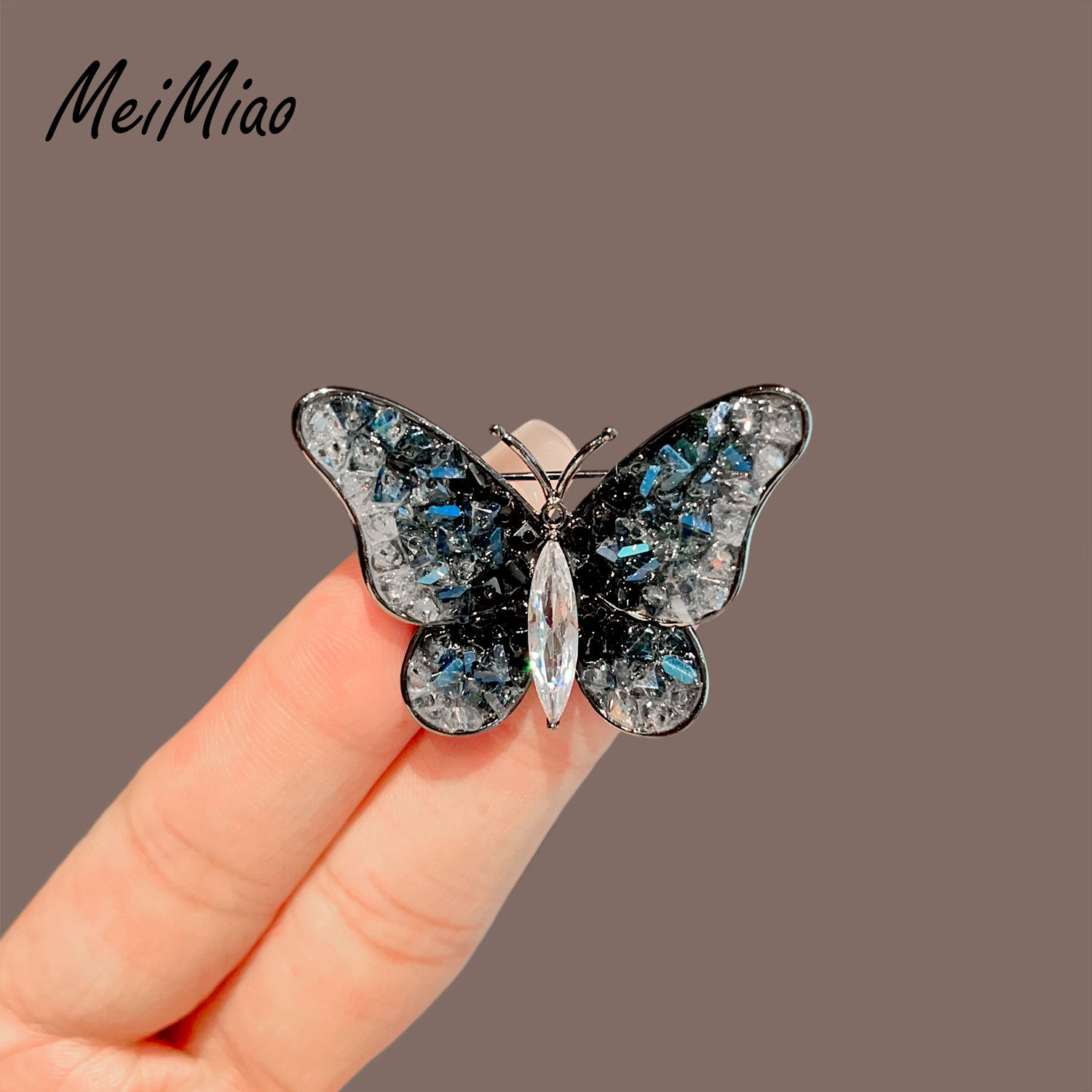 美苗~高档复古蓝水晶蝴蝶胸针女