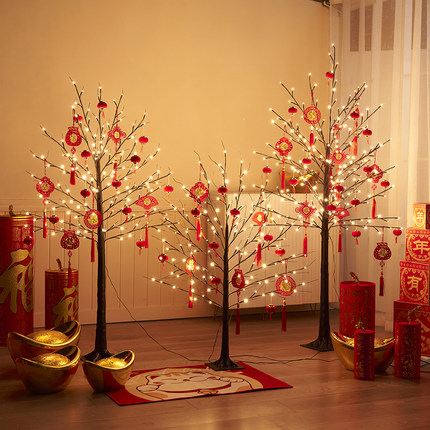 元旦新年装饰品发光树灯过年场景布置红包灯笼挂饰春节装饰灯摆件