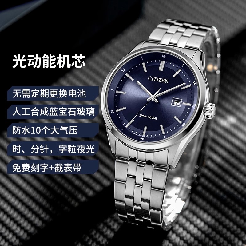 Citizen/西铁城光动能男表金典商务休闲防水夜光手表BM7560-59L/E