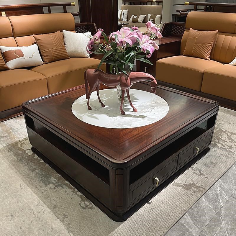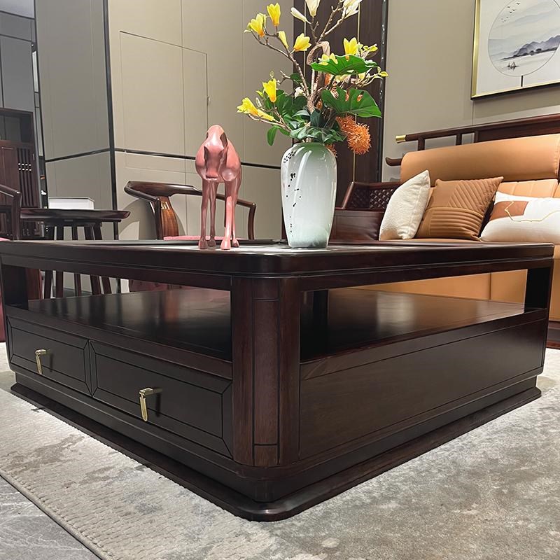 新中式乌金木客厅茶几轻奢高端全实木现代简约家用岩板储物大方几