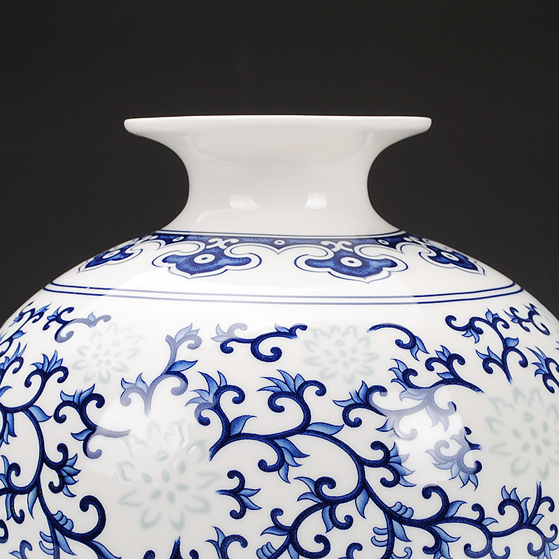 景德镇陶瓷器青花玲珑骨瓷薄胎小花瓶插花现代中式客厅装饰品摆件
