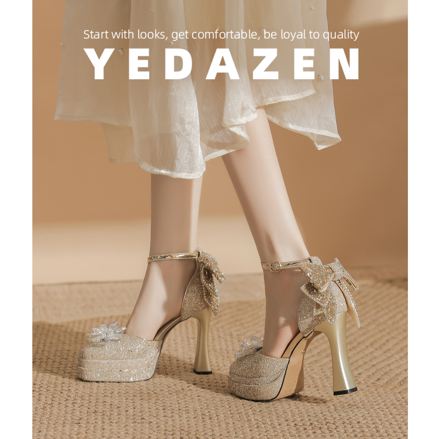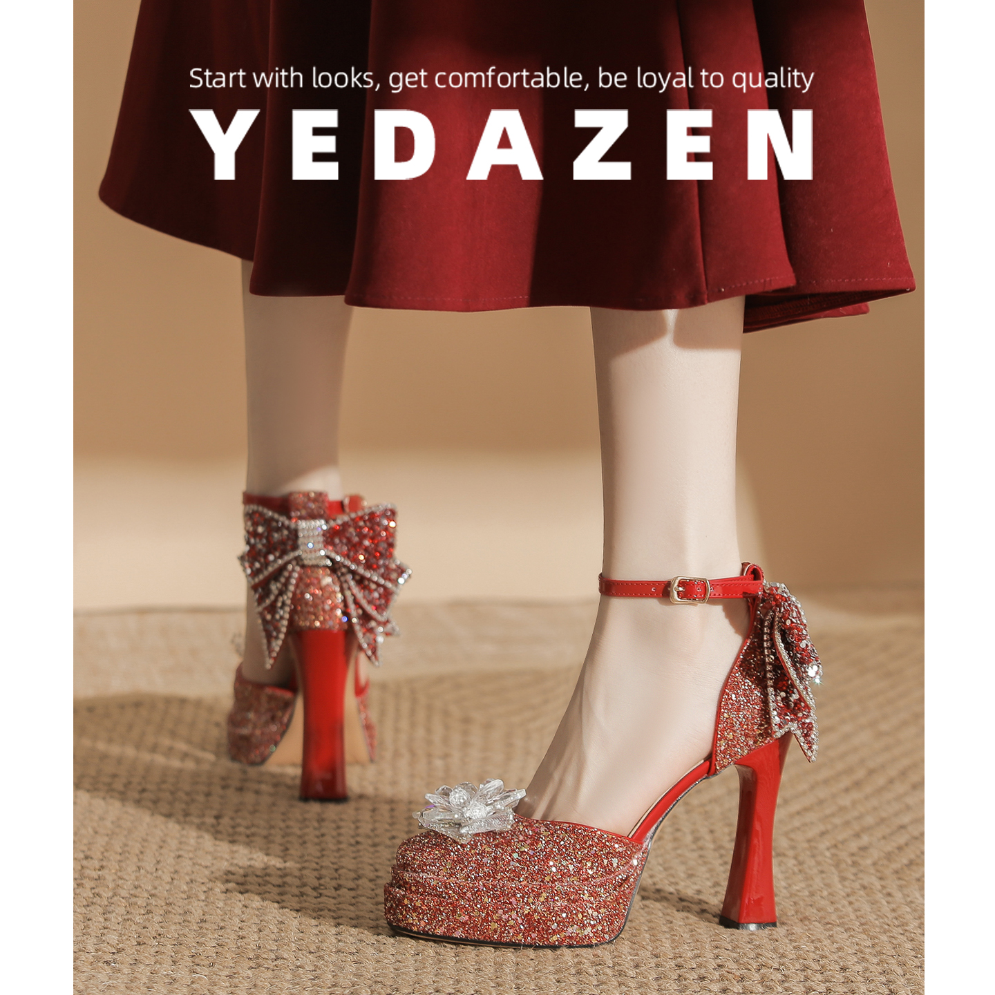 水钻粗跟高跟鞋防水台红色新娘婚鞋禾秀婚纱两穿订婚鞋女2025新款