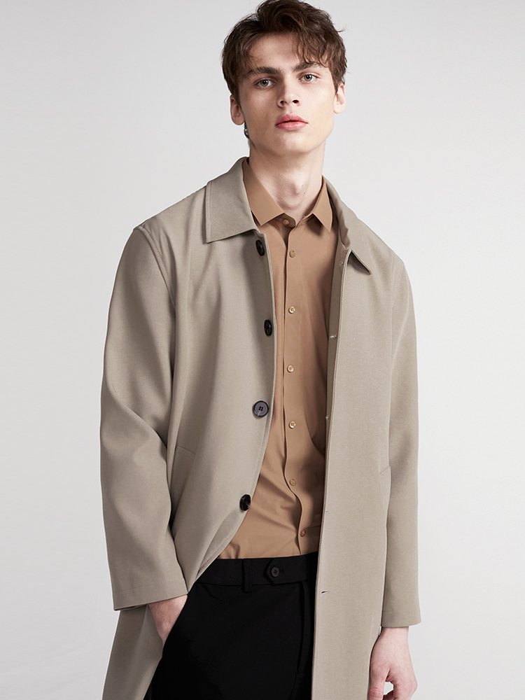 2025新品巴尔马肯男士风衣单排扣高级感纯色休闲春季中长款潮外套