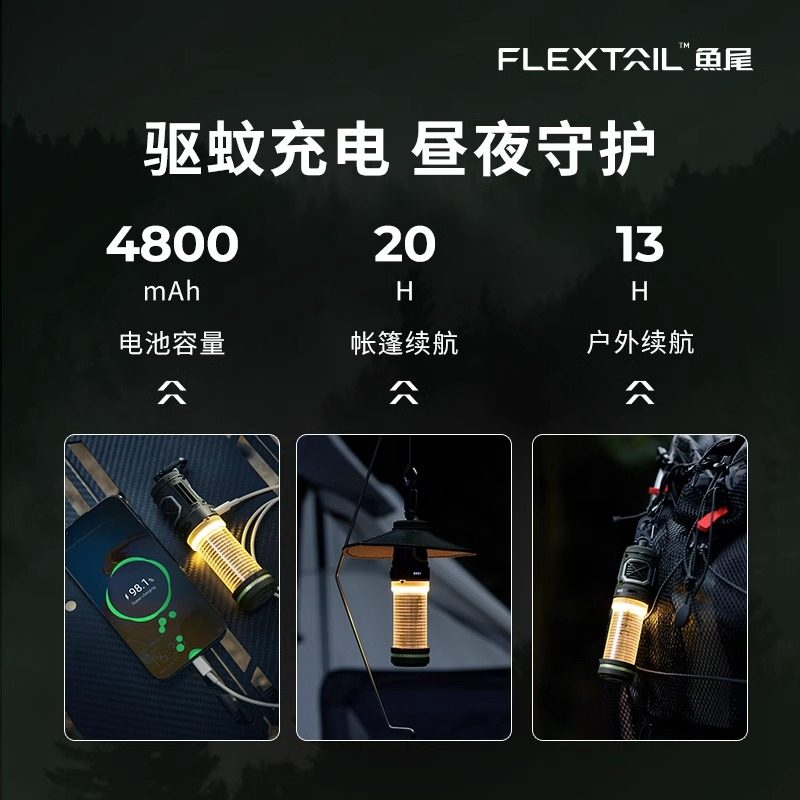 FLEXTAILGEAR鱼尾户外驱蚊神器便携电蚊香露营灭蚊灯钓鱼防蚊用品
