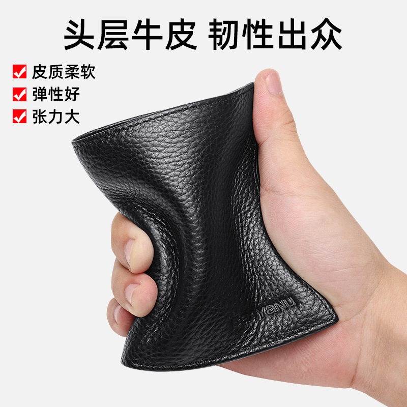 超薄头层牛皮钱包男士2025短款真皮皮夹子竖款潮拉链钱夹卡包一体