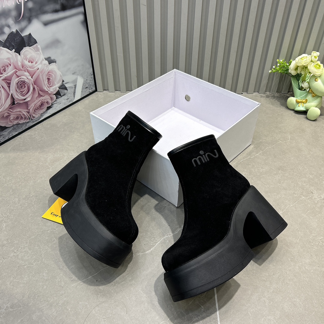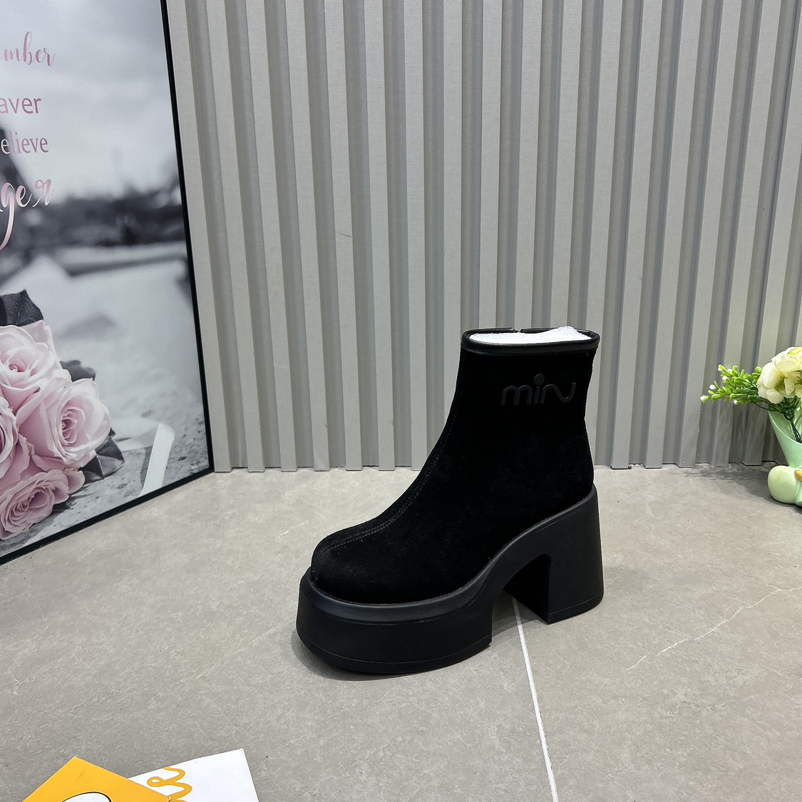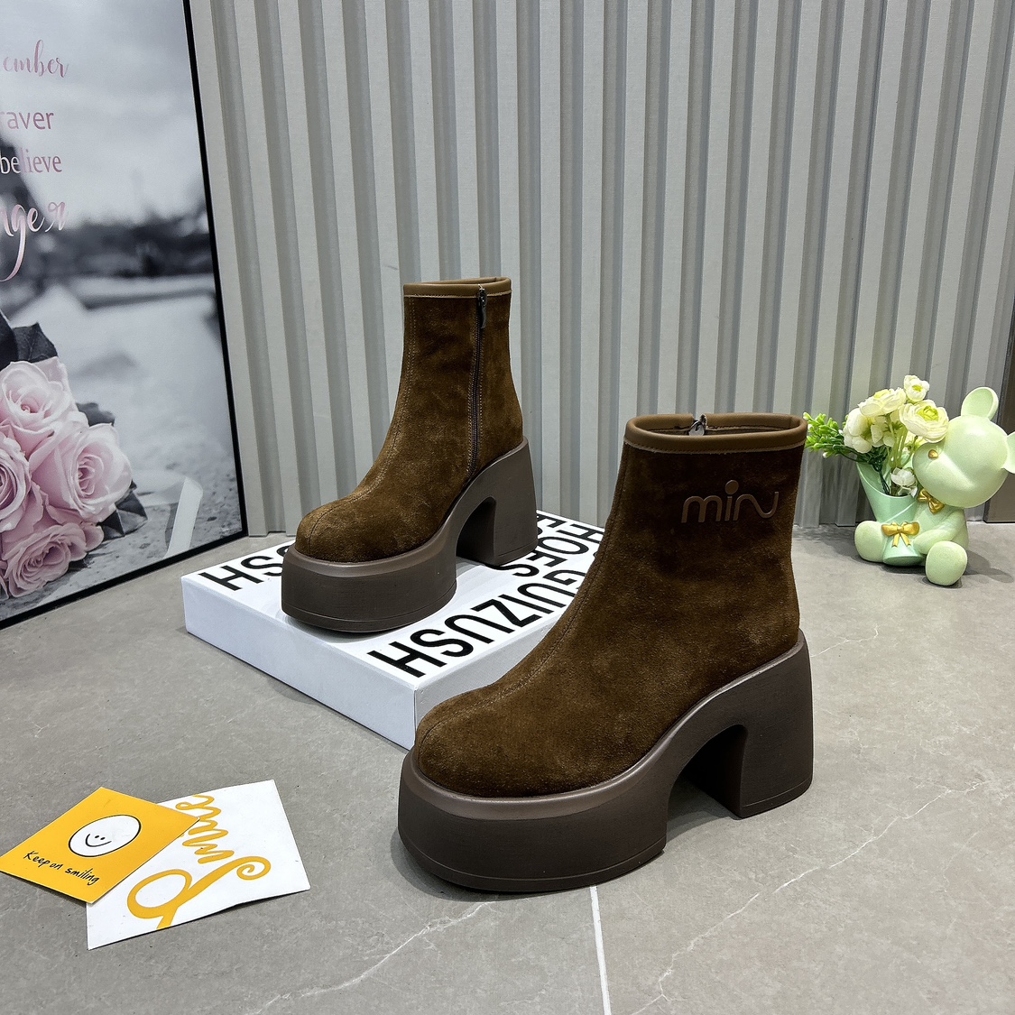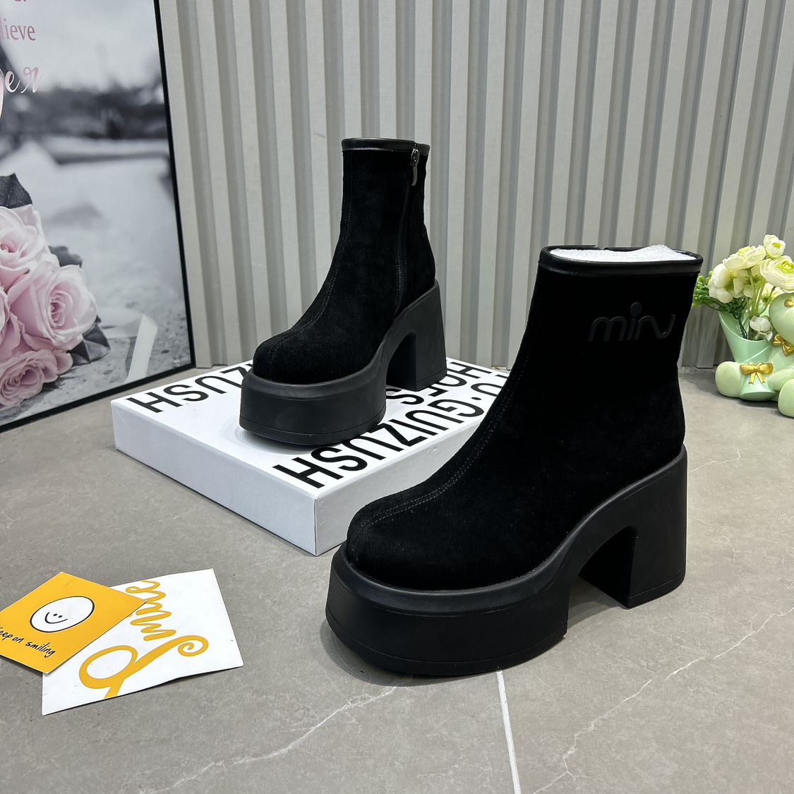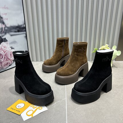 气质优雅女秋冬新款9CM粗跟厚底短靴翻毛皮防水台真皮高跟马丁靴