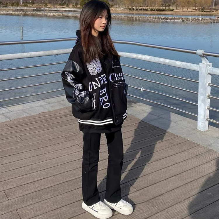 美式高街拼接字母刺绣夹克棒球服男女秋季新款潮牌青少年学生外套