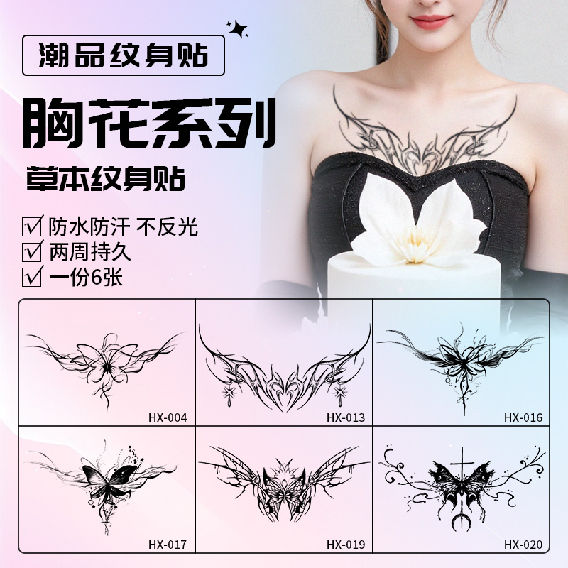 XMXP草本胸花蝴蝶纹身贴女防水持