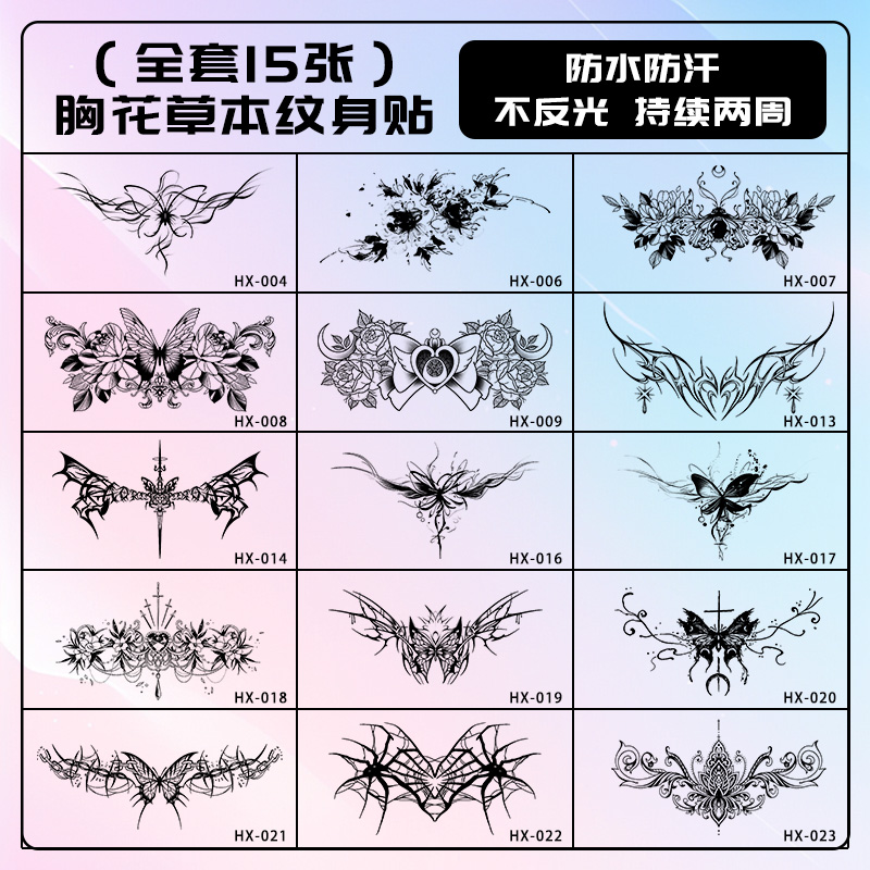 XMXP草本胸花蝴蝶纹身贴女防水持久高级感性感果汁贴不反光刺青色
