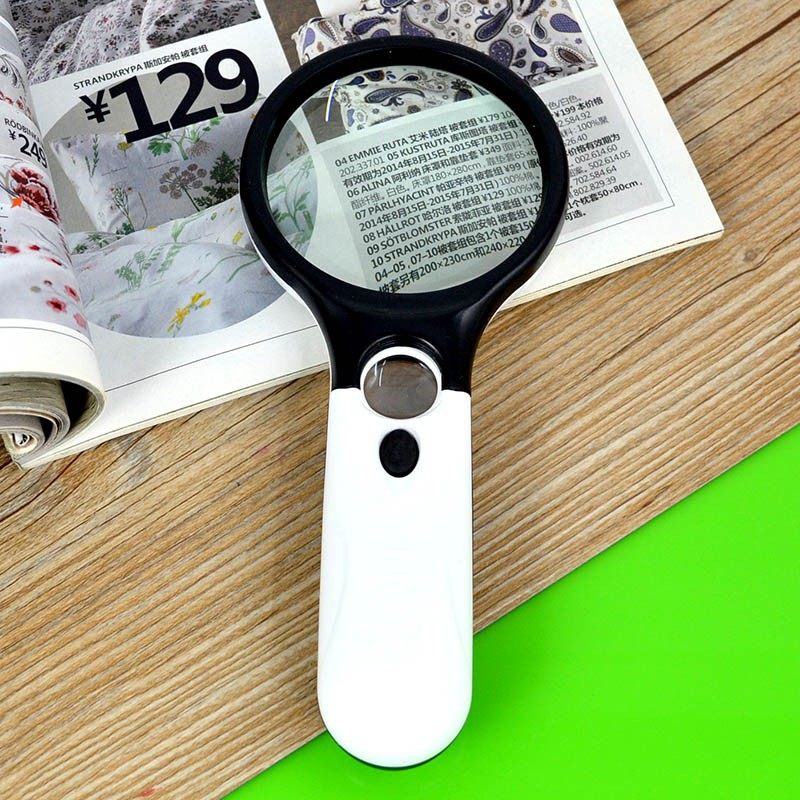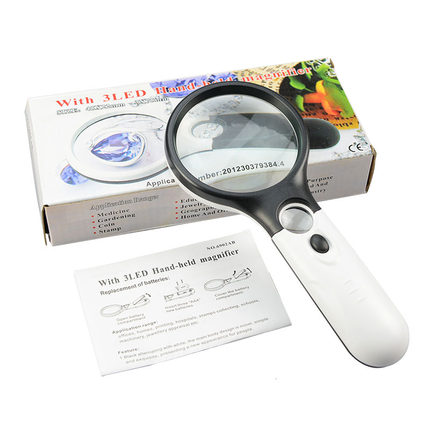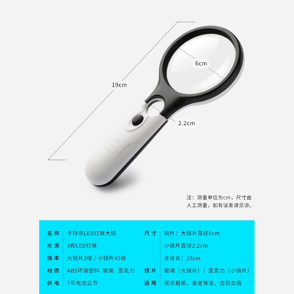高倍高清放大镜 双镜手持式维修看线路板发大镜 老人阅读 带LED灯