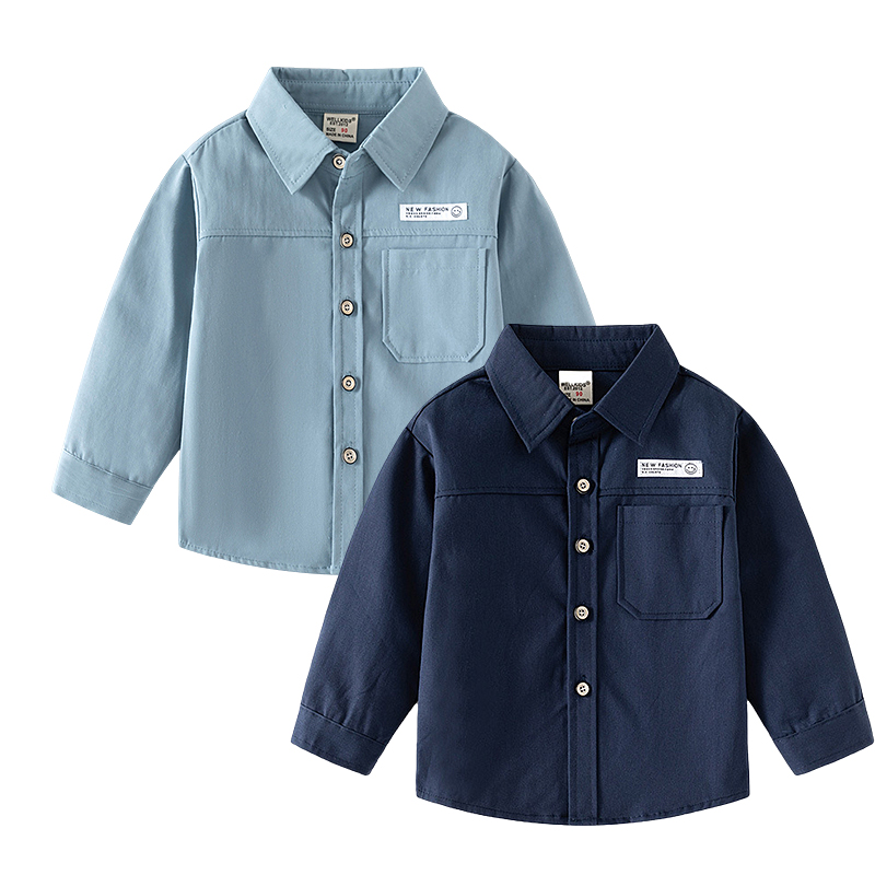 男童长袖衬衫2025春季新款儿童宝宝纯棉纯色工装休闲衬衣上衣洋气