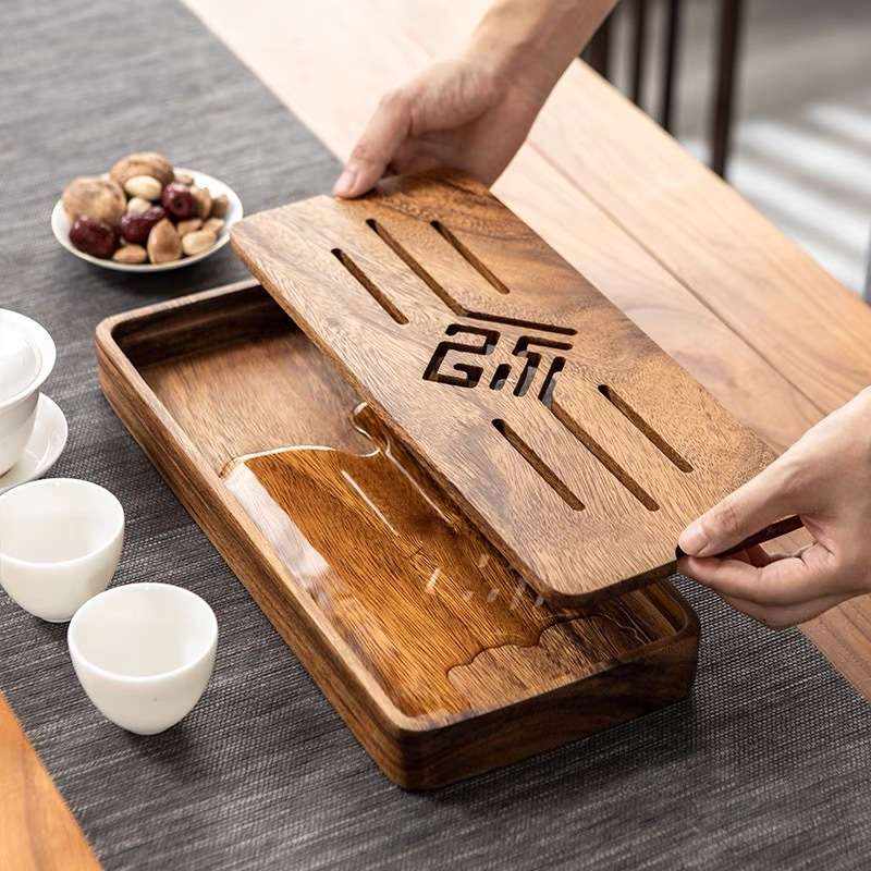 整料实木茶盘沥水家用功夫茶具茶海茶托简约储水托盘迷你小号茶台