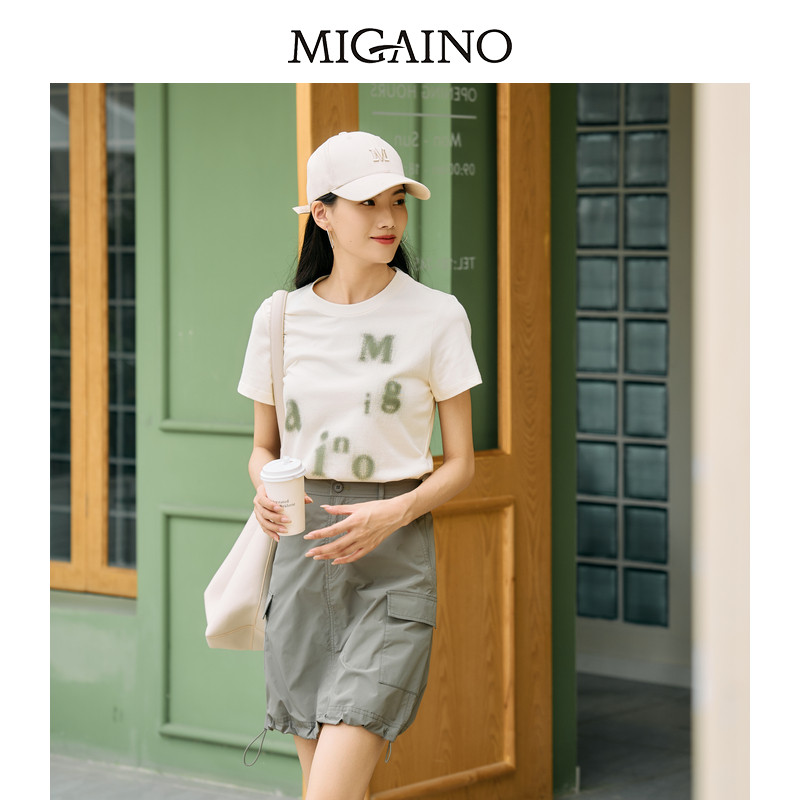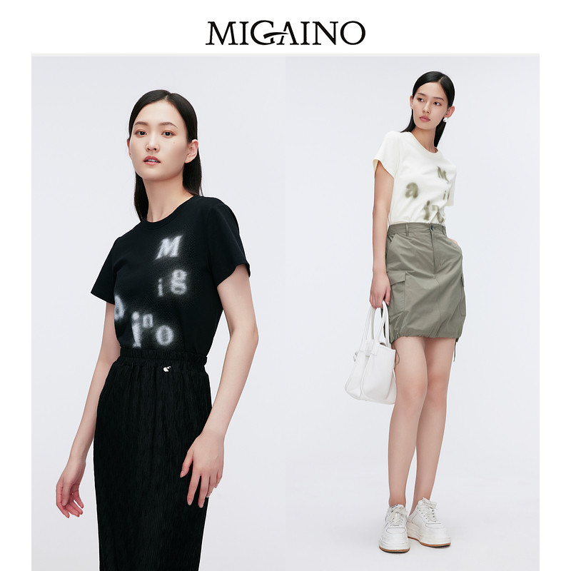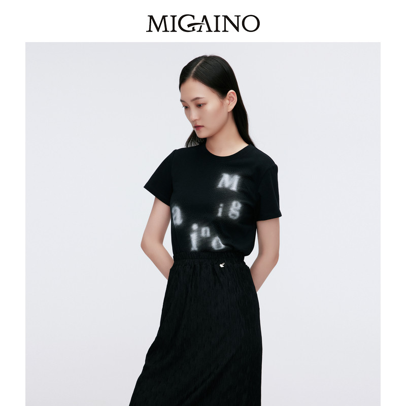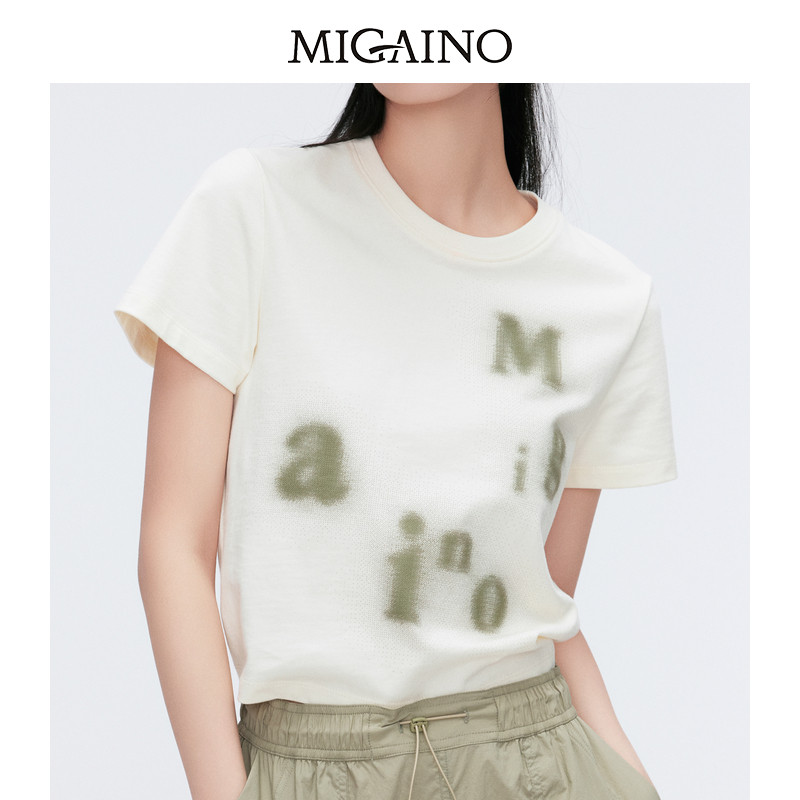 Migaino曼娅奴女装夏季新款小个子正肩圆领短袖T恤 MO22RA028