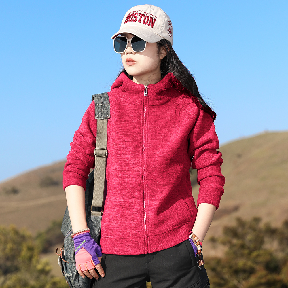 户外连帽抓绒衣女摇粒绒外套秋冬保暖上衣2025新款加绒冲锋衣内胆