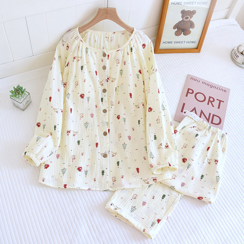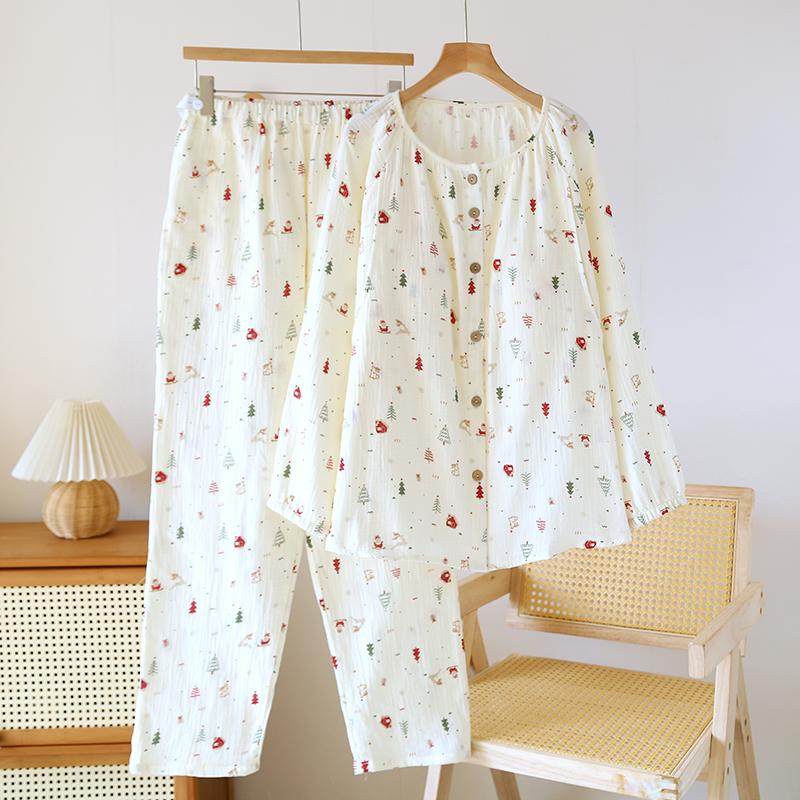 纯棉胸垫款月子服春秋夏季薄款孕妇睡衣纱布哺乳衣产后喂奶大码