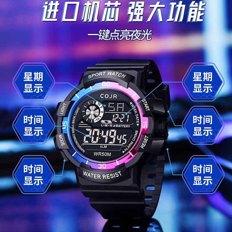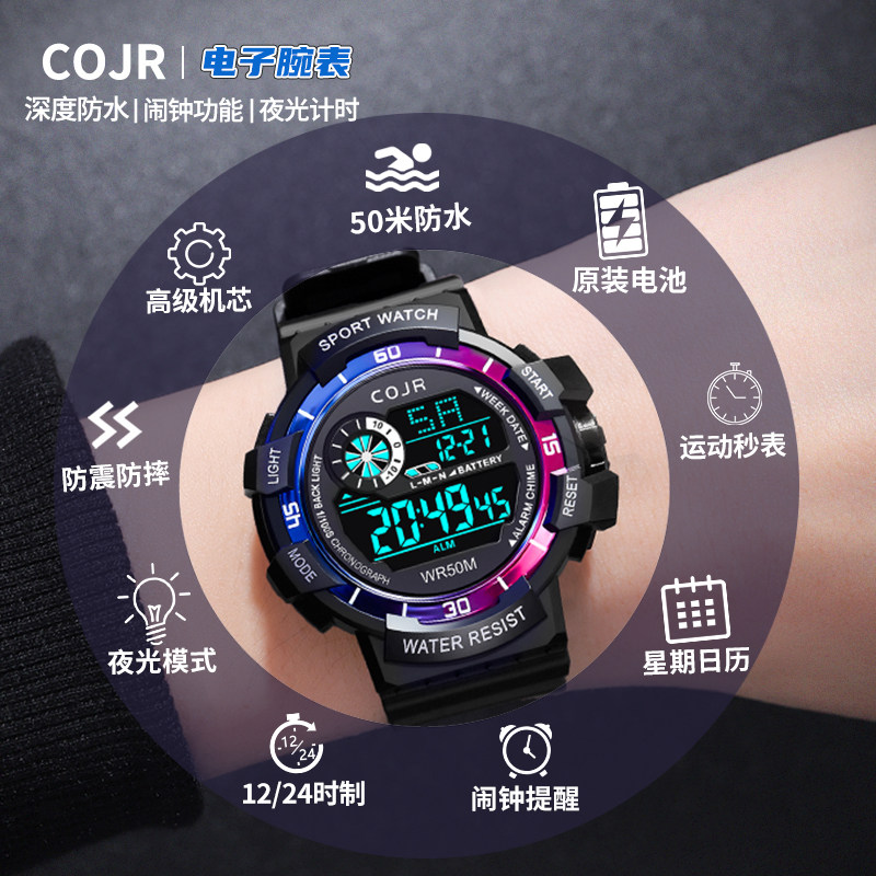 手表男款初中学生高中男生青少年运动儿童男孩防水闹钟机械电子表