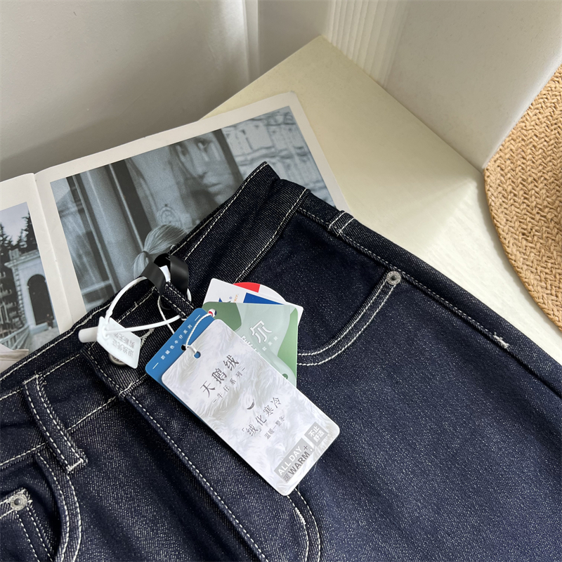 秒变超模腿!加绒保暖微喇牛仔裤女高腰弹力修身显瘦直筒喇叭裤冬