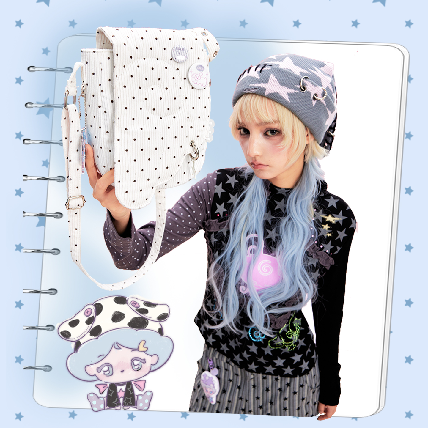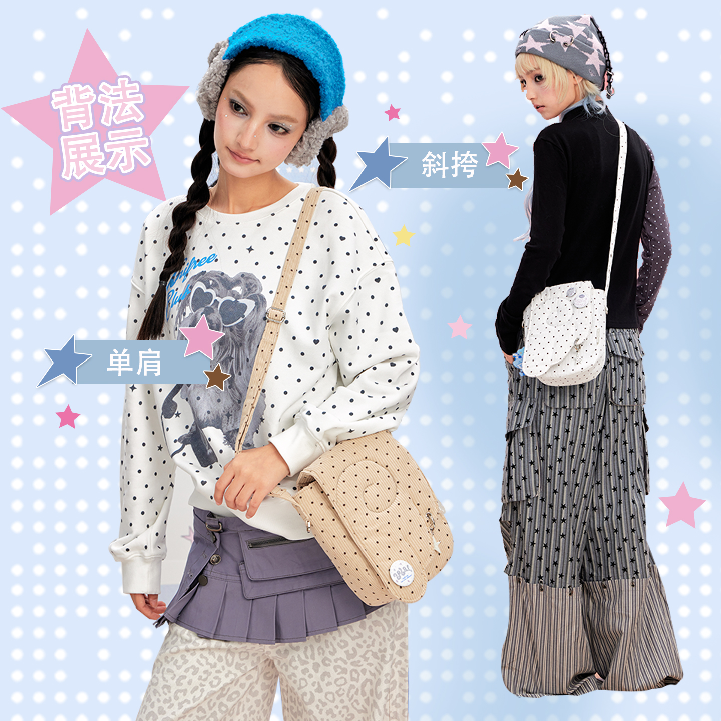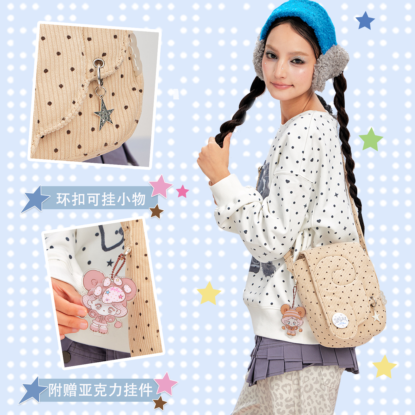 LOLA DESIGN天使翅膀波点小挎包 韩系可爱出游小单肩包轻便手机包