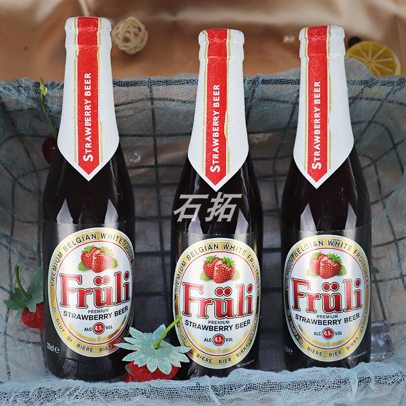芙力草莓啤酒比利时进口果味酒4瓶套装芙丽 女士甜酒 4瓶装
