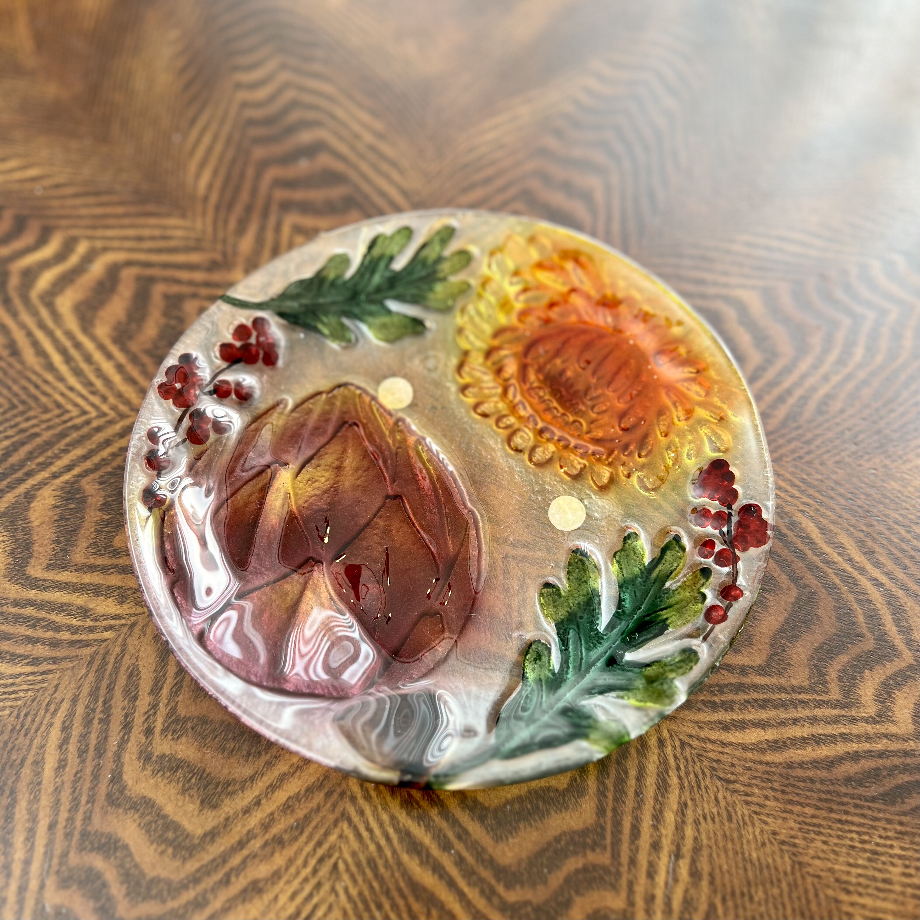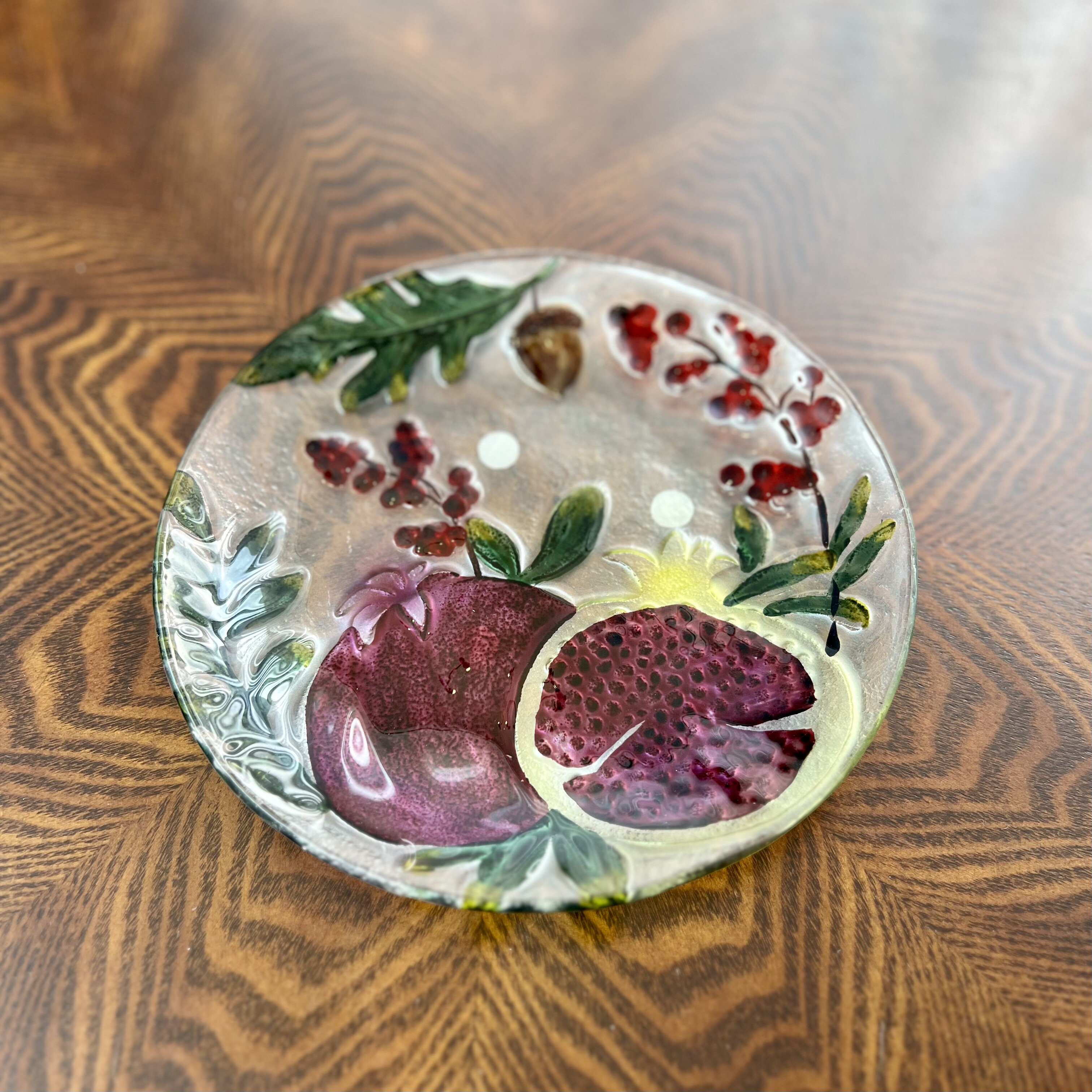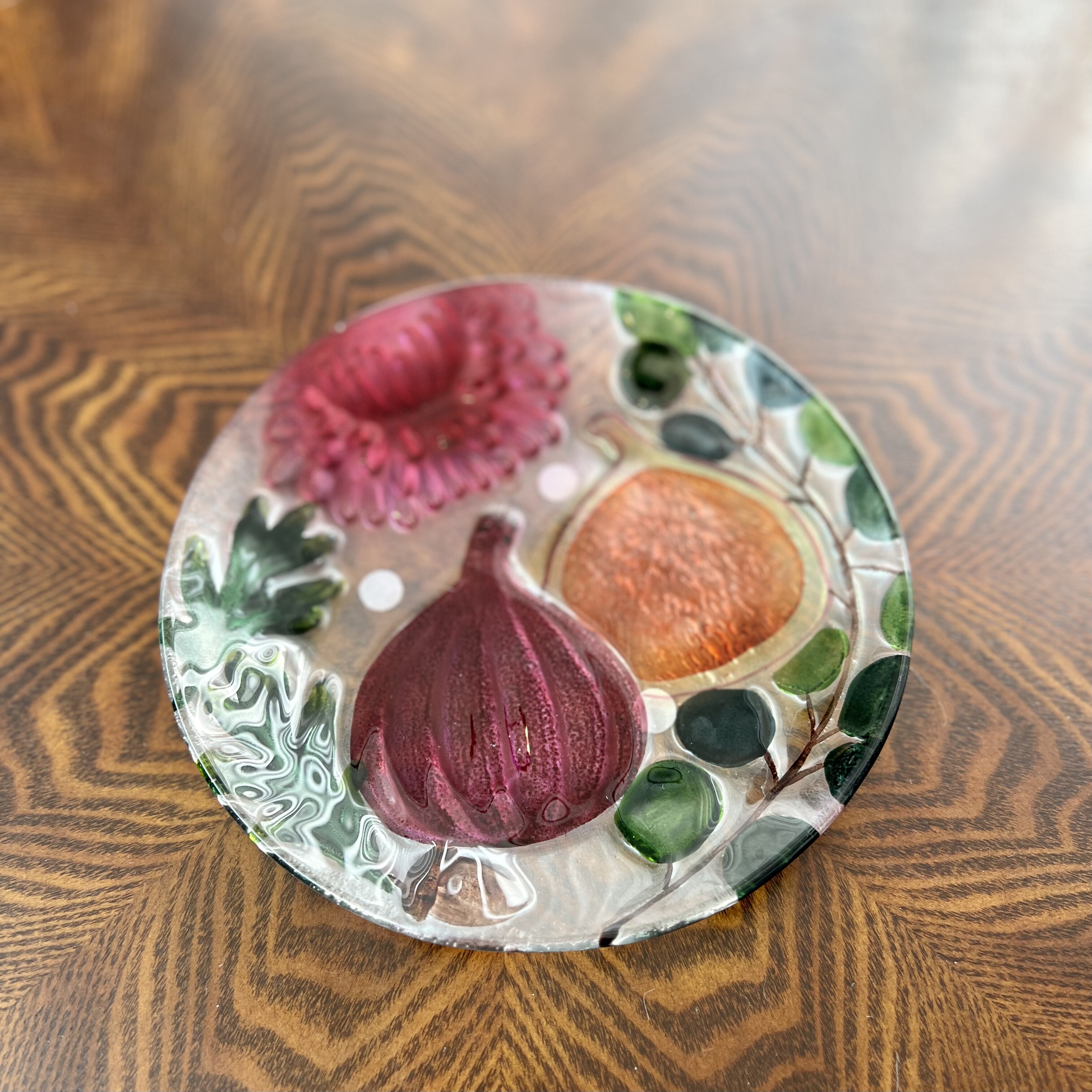 手工彩绘果蔬琉璃四件套果盘干果盘装饰摆件20*20*2cm