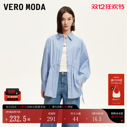 Vero Moda衬衫2025夏季新款含棉条纹抽绳口袋设计上衣325205043