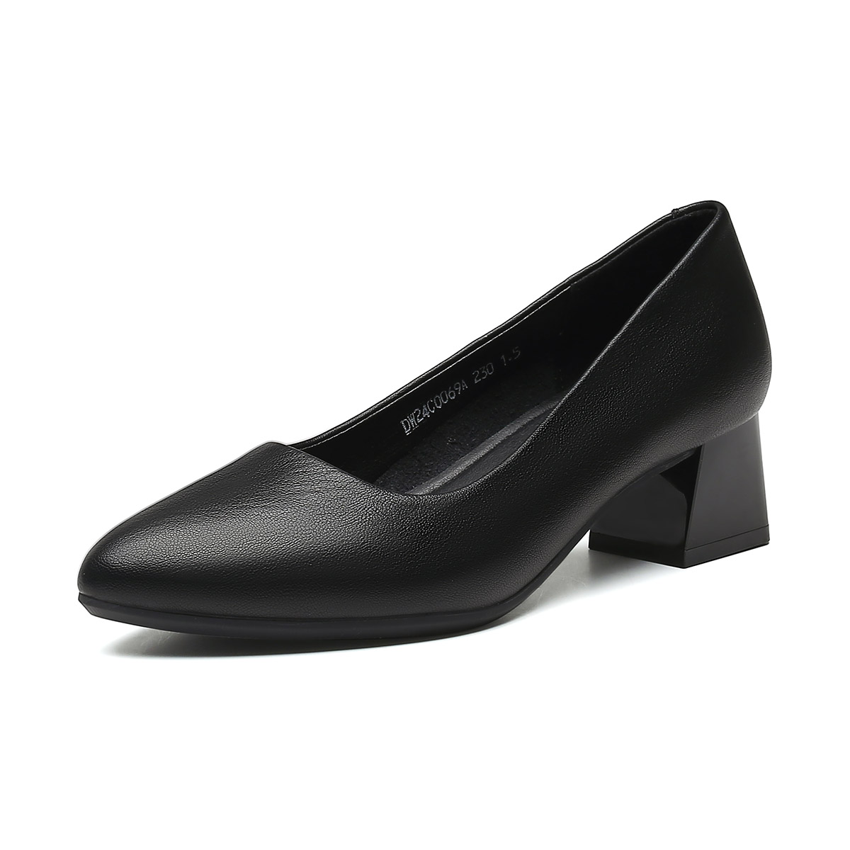 大东高跟鞋女2025新款秋季气质尖头粗跟单鞋女浅口皮鞋软皮职业鞋