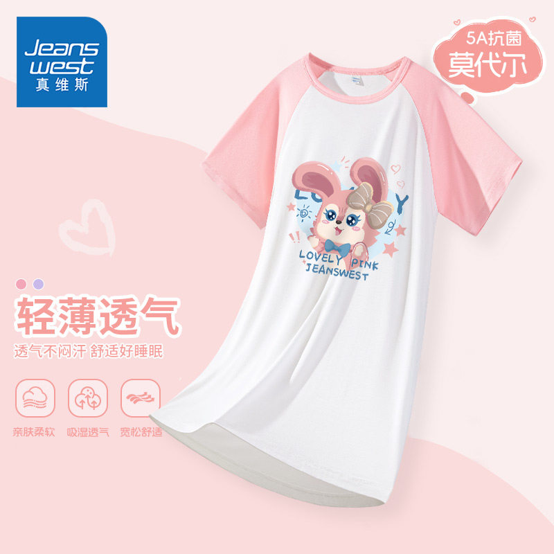真维斯童装女童夏季睡衣中大童夏款透气莫代尔家居服女孩睡裙夏装