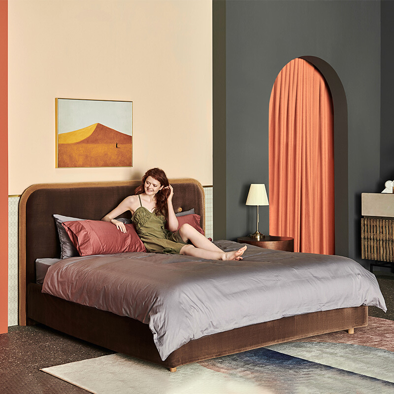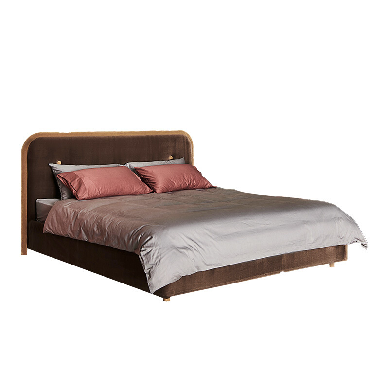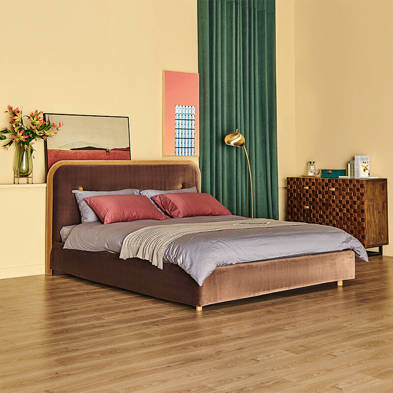 北欧简约现代丝绒布艺1.8米双人床样板间轻奢网红isn风设计师婚床