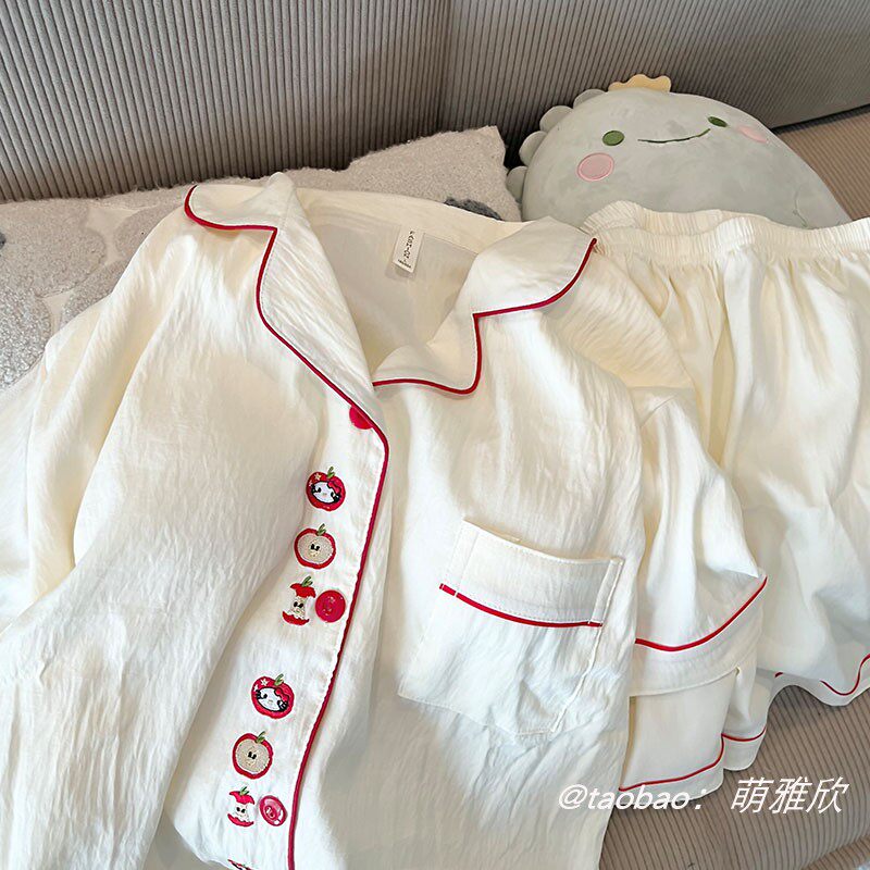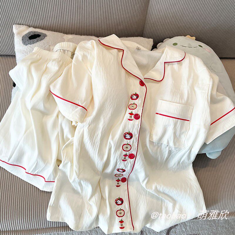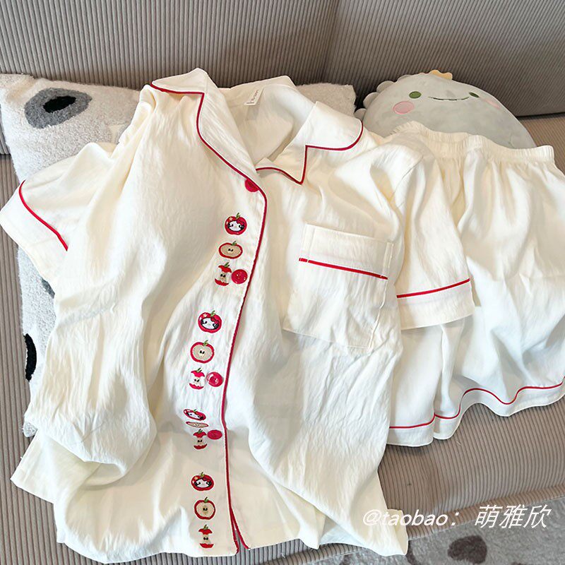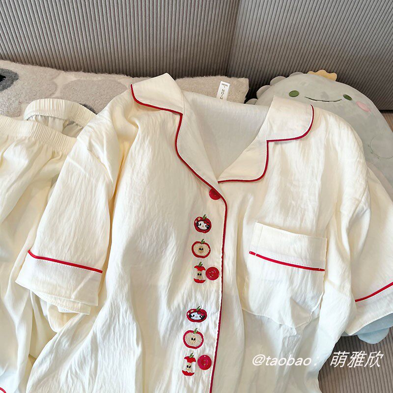 带胸垫KT猫睡衣女款秋春夏季云朵棉短袖短裤两件套少女出门家居服