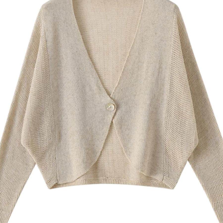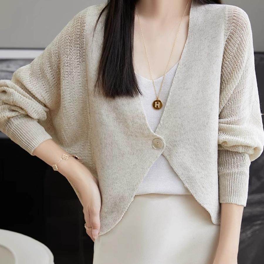 天丝亚麻单排扣V领外搭螺纹开衫