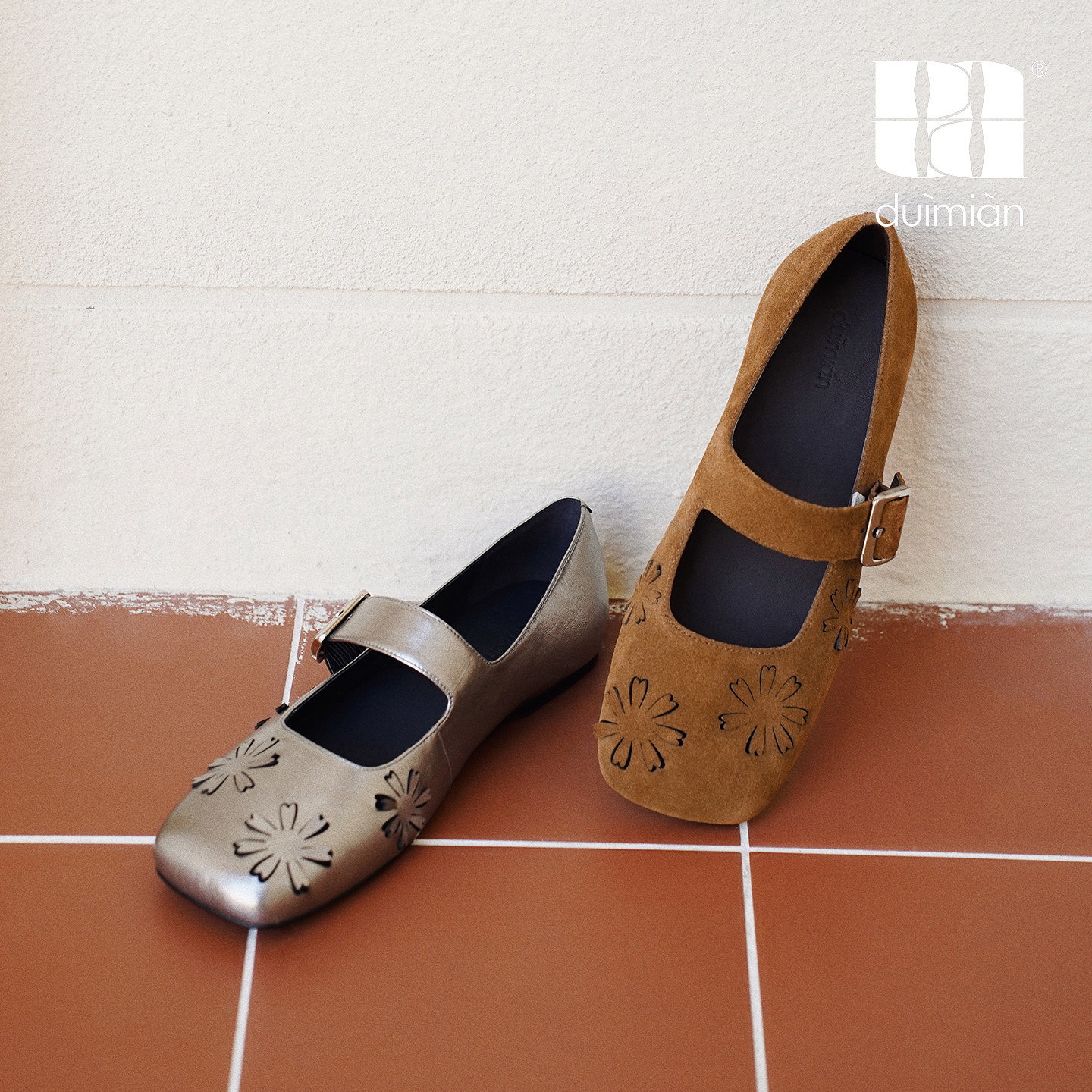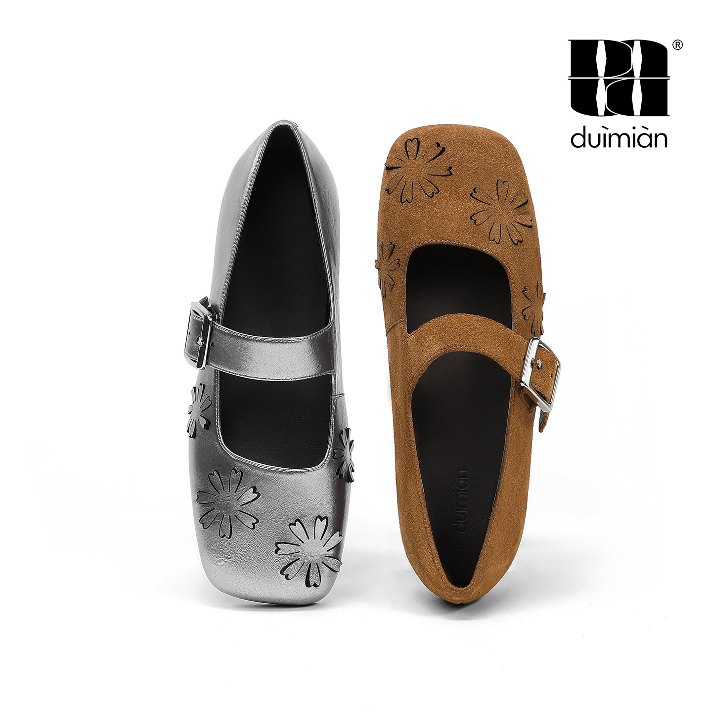 对面duimian 银色方头玛丽珍2026年春季新款女单鞋平底复古皮鞋