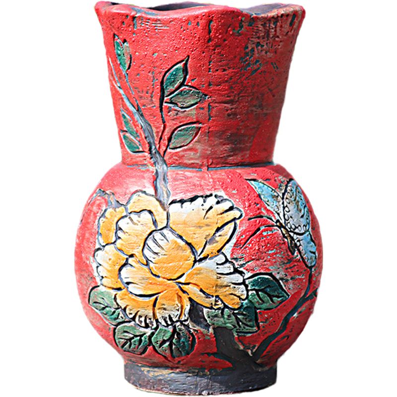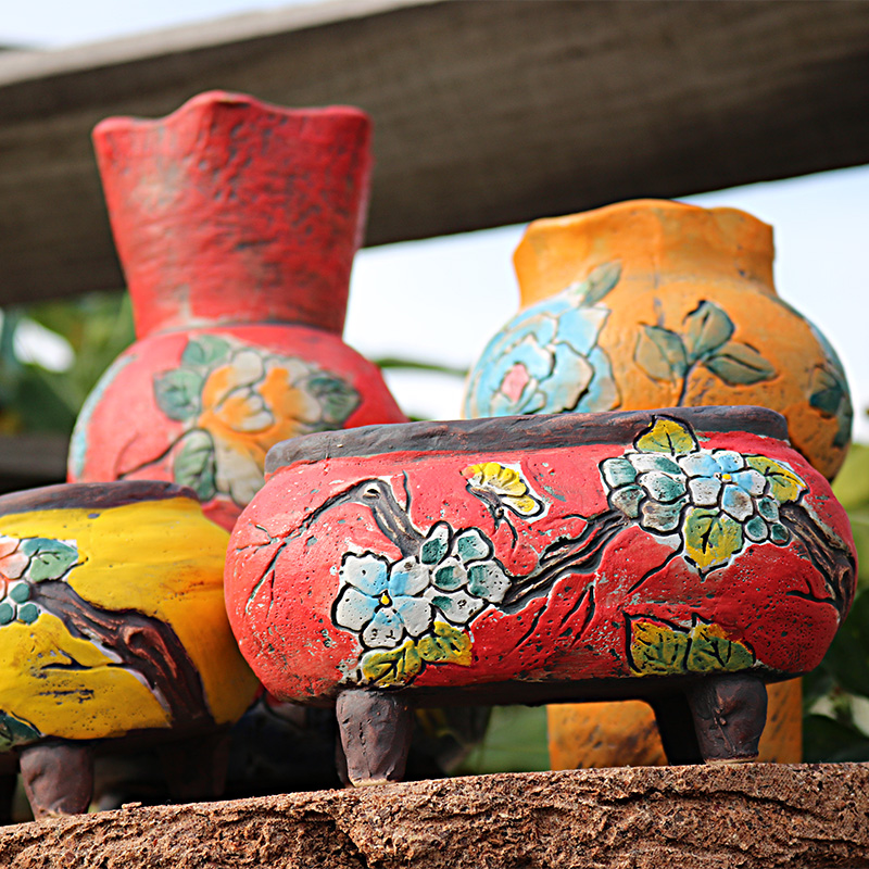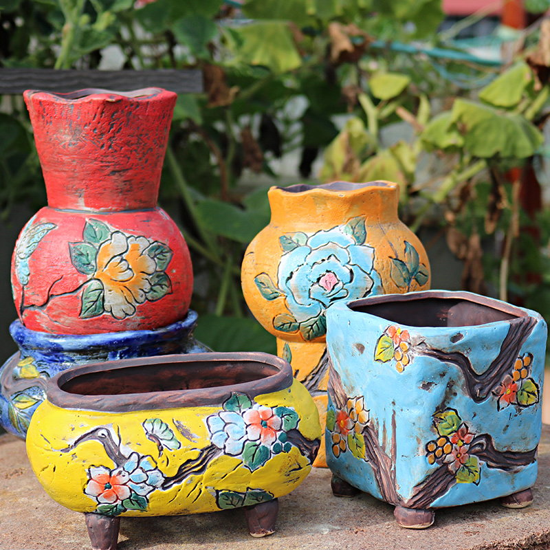 述息多肉植物花盆韩式手绘浮雕粗陶创意立体拼盘老庄多肉蝴蝶花盆