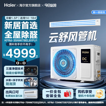 【感恩季】海尔3匹2匹1.5匹云舒领航风管机家用中央空调一级能效