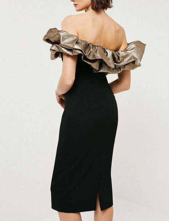 连衣裙女春夏新款无袖一字肩荷叶边收腰包臀性感高级聚会拍照长裙