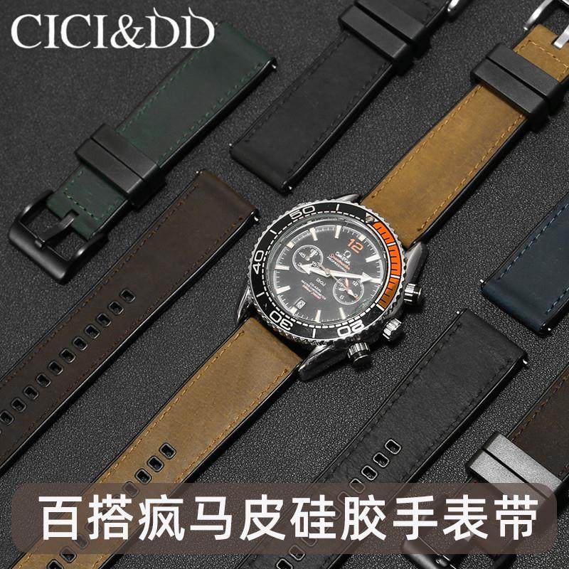 原装适用疯马皮表带天梭速驰美度欧米茄阿玛尼真皮硅胶表链配件男