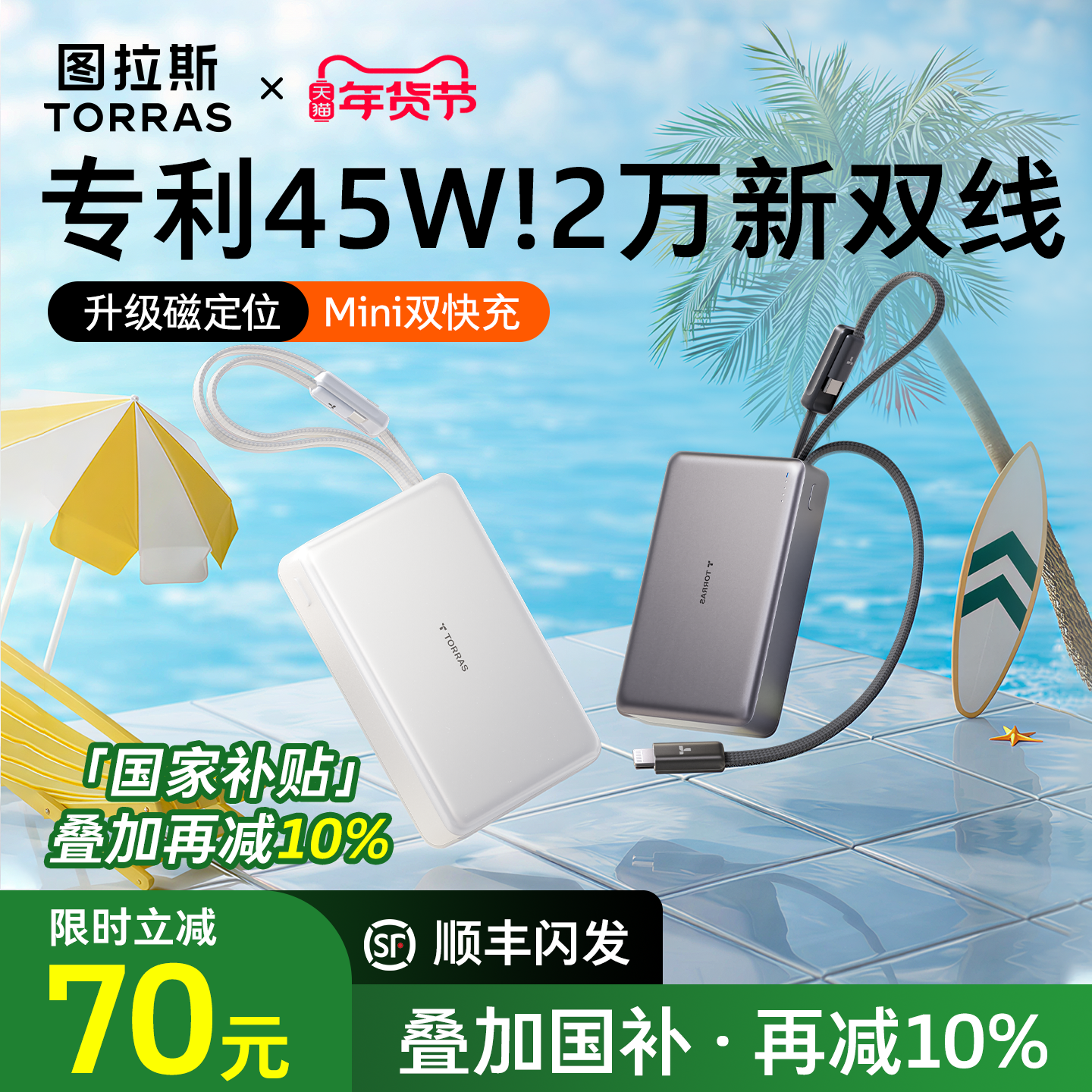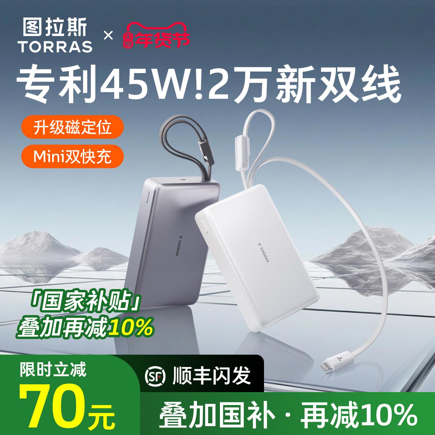 [国补立减10%]双线45W大容量超充